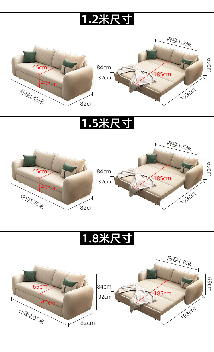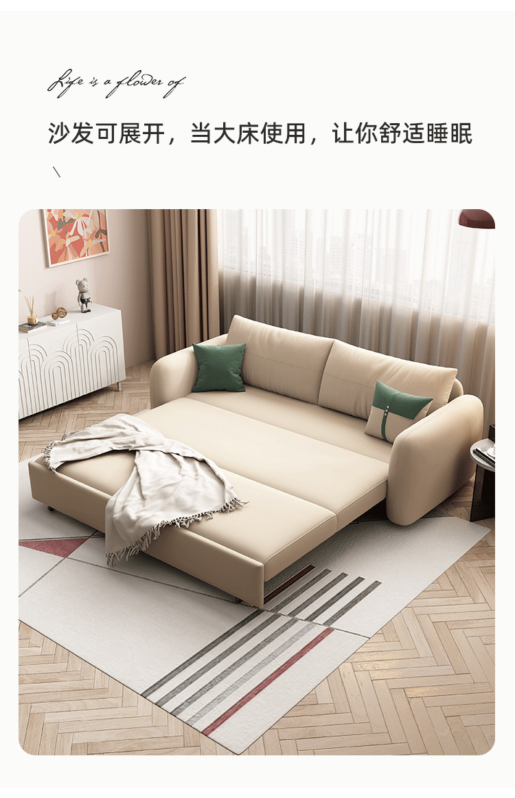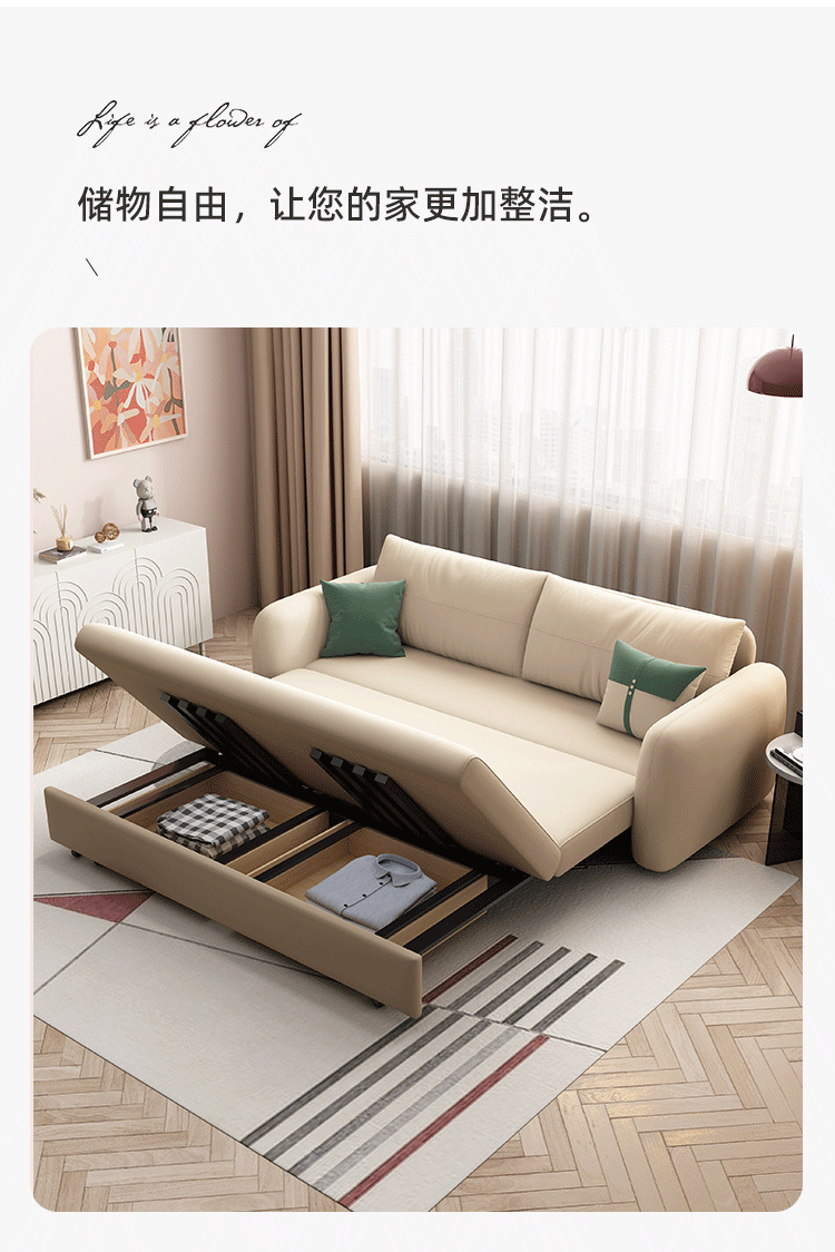 크림 스타일 소파 침대 이중 목적 푸시 풀 텔레스코픽 작은 아파트 다기능 거실 더블 스토리지 접이식 단순