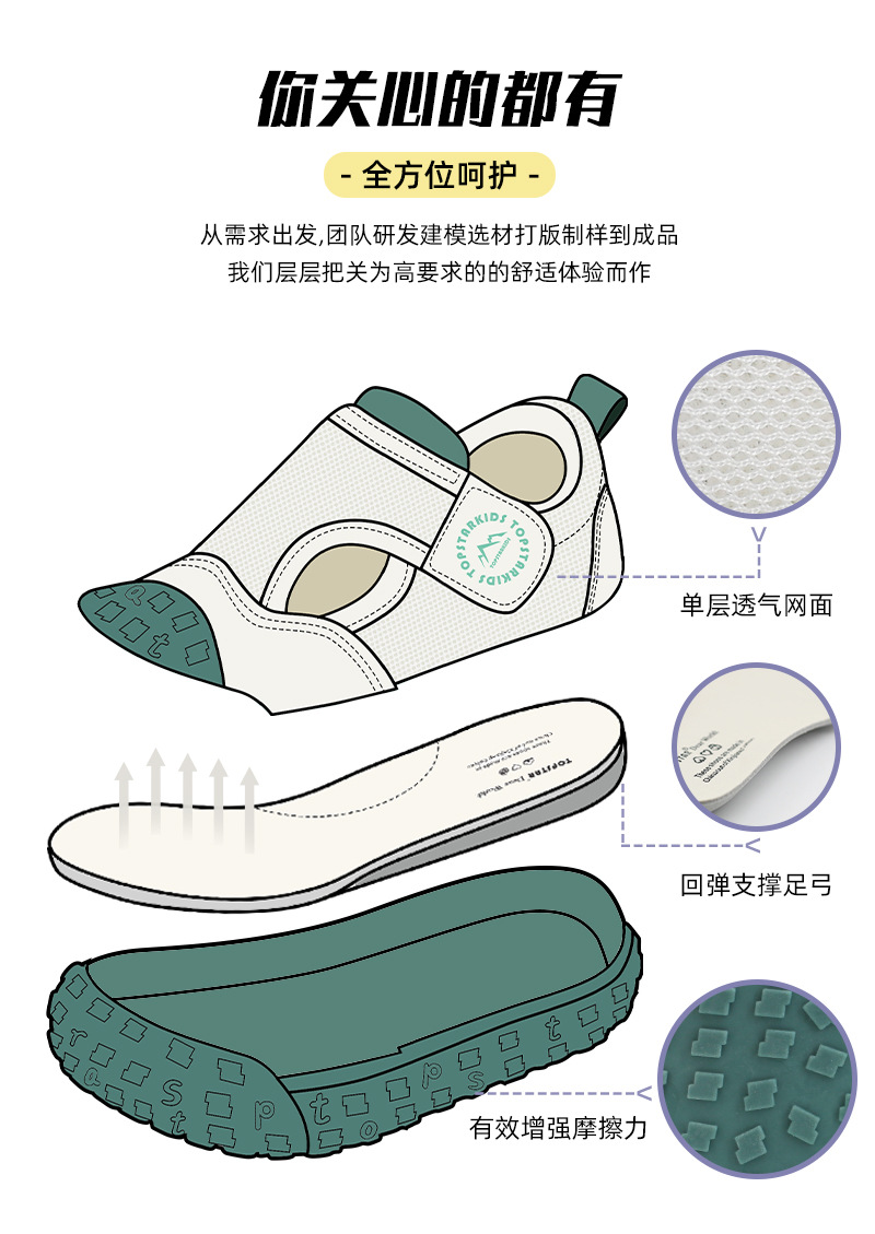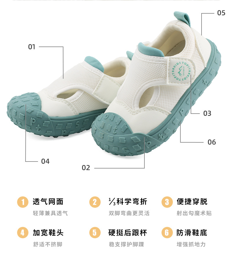 TOPSTAR2024 여름 신상품 부드러운 밑창 어린이 메쉬 신발 한국식 통기성 유치원 실내화 7008