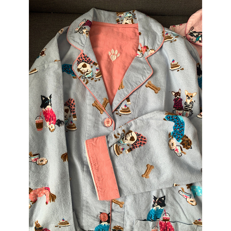 한국식 만화 인쇄 긴팔 잠옷 여성의 봄과 가을 2024 새로운 고급 카디건 바지 홈 의류 세트스토어 가기