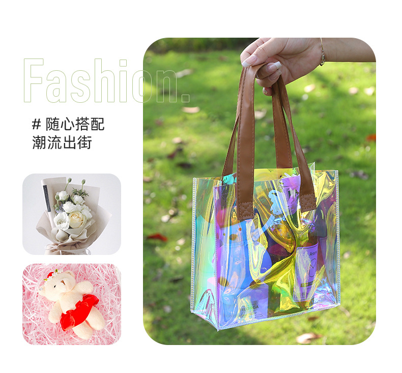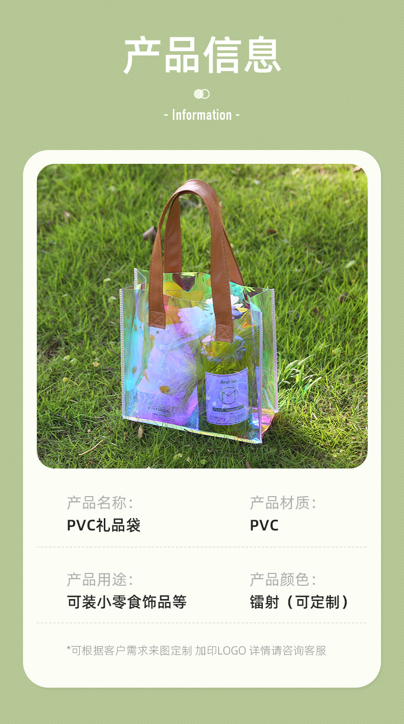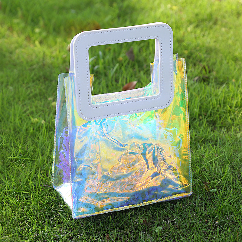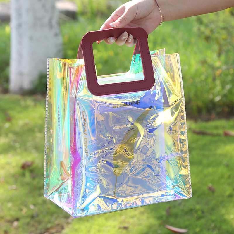 레이저 가방 사용자 정의 로고 투명 광고 토트 가방 젤리 가방 휴일 선물 가방 pvc 비닐 봉투 맞춤스토어 가기