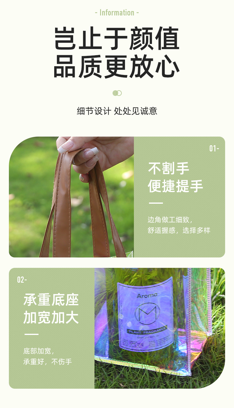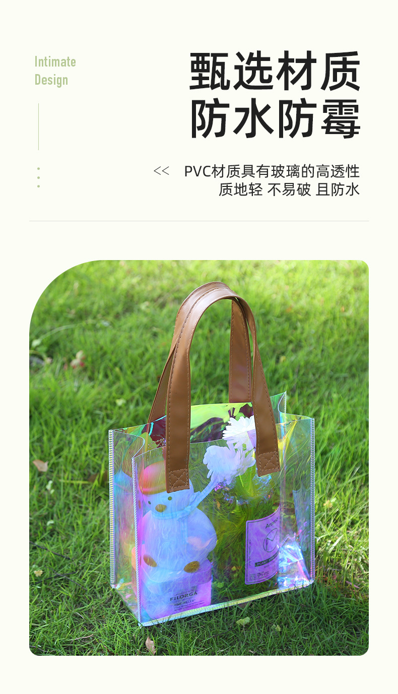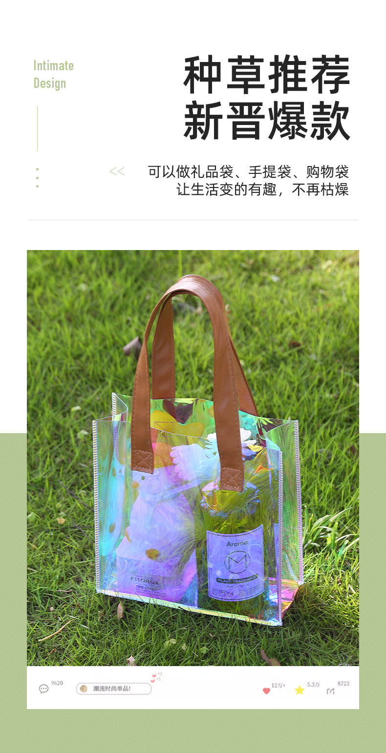 레이저 가방 사용자 정의 로고 투명 광고 토트 가방 젤리 가방 휴일 선물 가방 pvc 비닐 봉투 맞춤스토어 가기