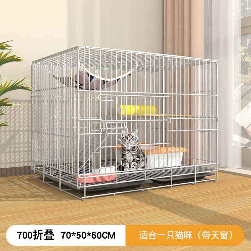• 흰색 70*50*60cm 더블 레이어 접이식 고양이 케이지