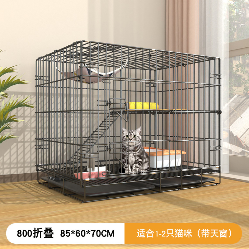 • 블랙 85*60*70cm 더블 레이어 접이식 고양이 케이지