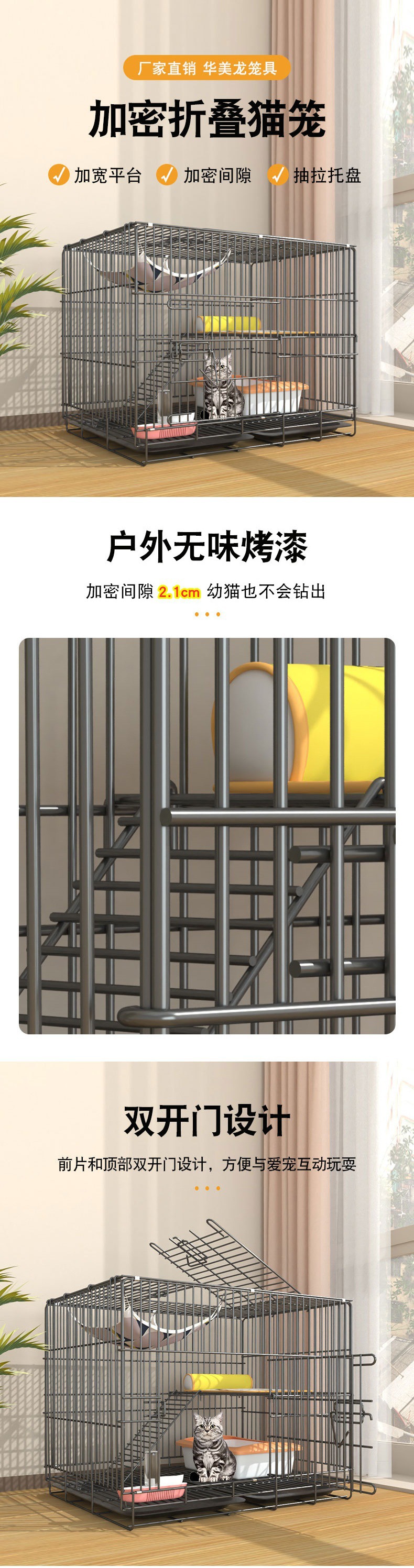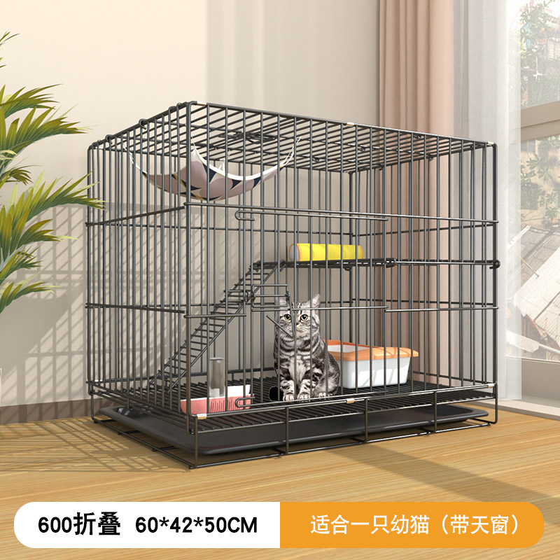 • 블랙 61*42*50cm 더블 레이어 접이식 고양이 케이지