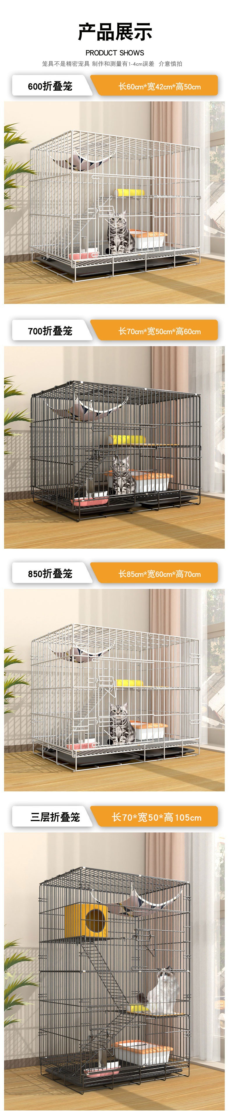• 블랙 70*50*60cm 더블 레이어 접이식 고양이 케이지