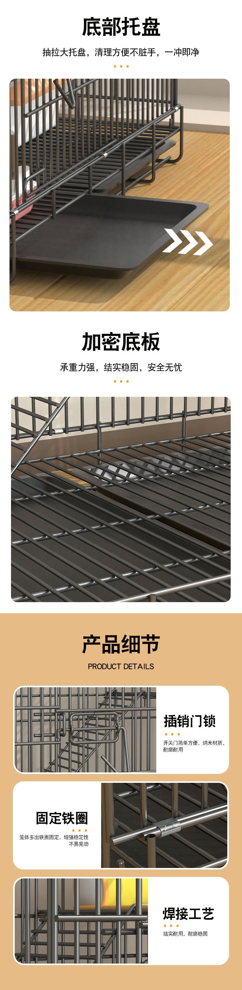 • 블랙 85*60*130cm 4겹 접이식 고양이 케이지
