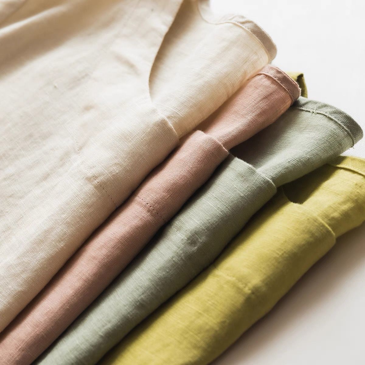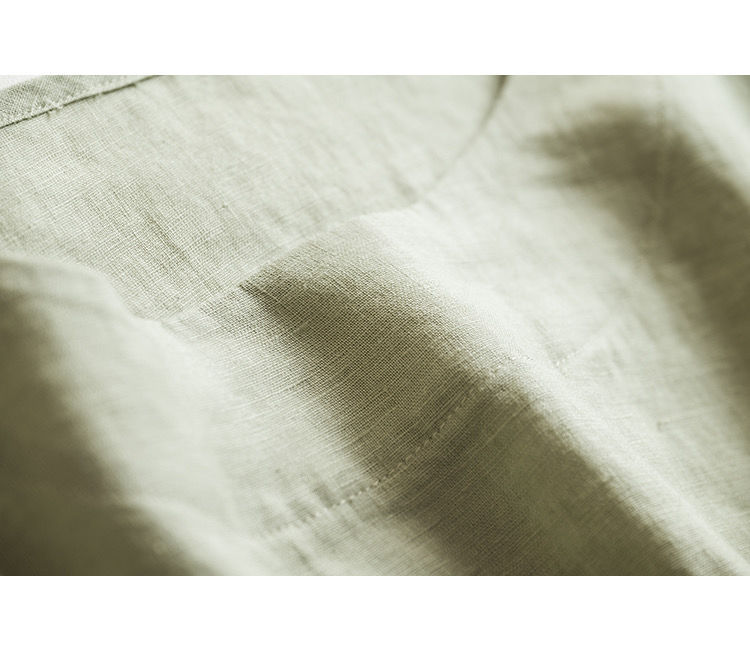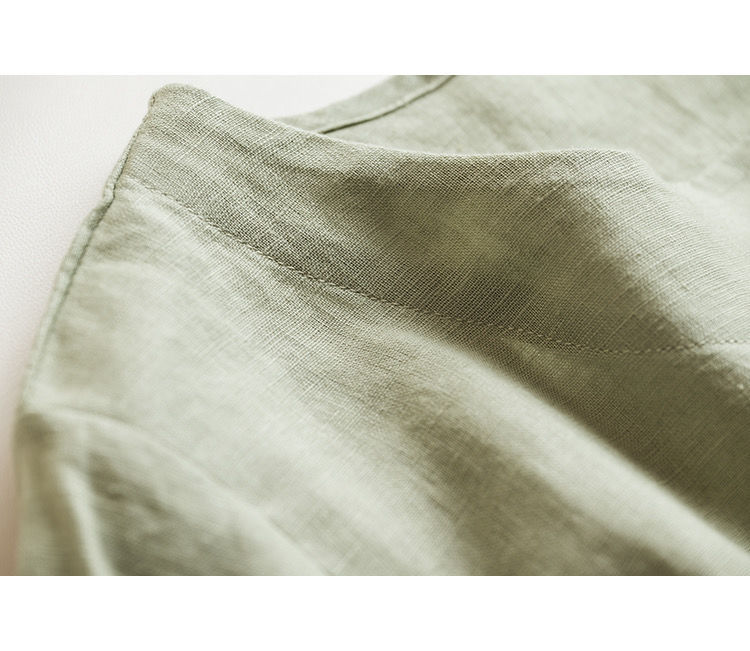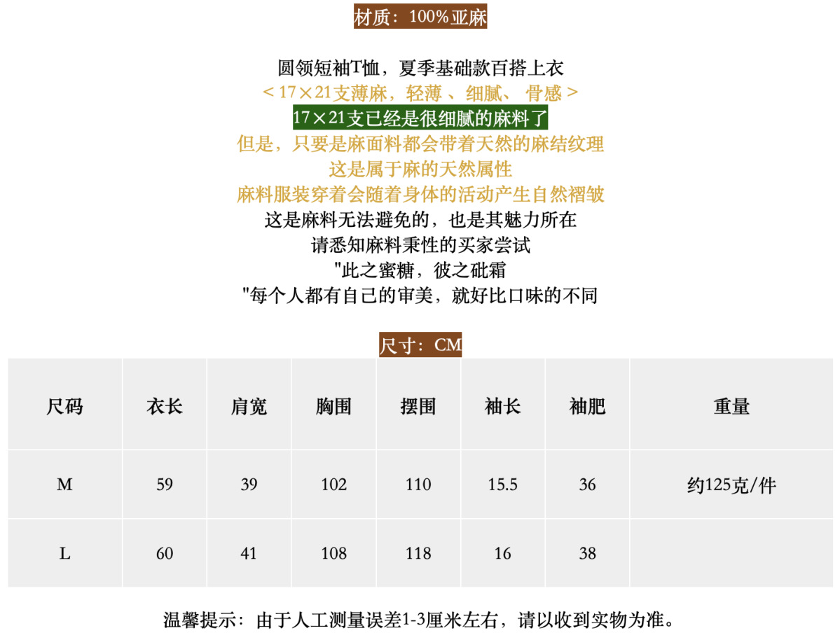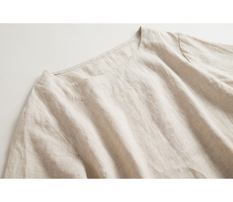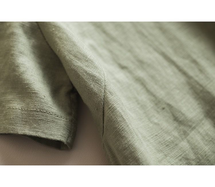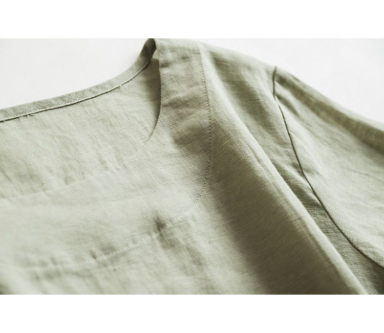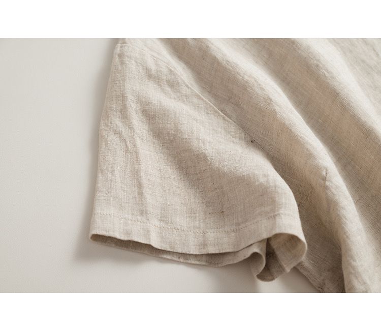 일본 통근 단순 17 × 21 미세 순수 리넨 예술적 기질 얇은 둥근 목 반팔 티셔츠 셔츠 탑스토어 가기
