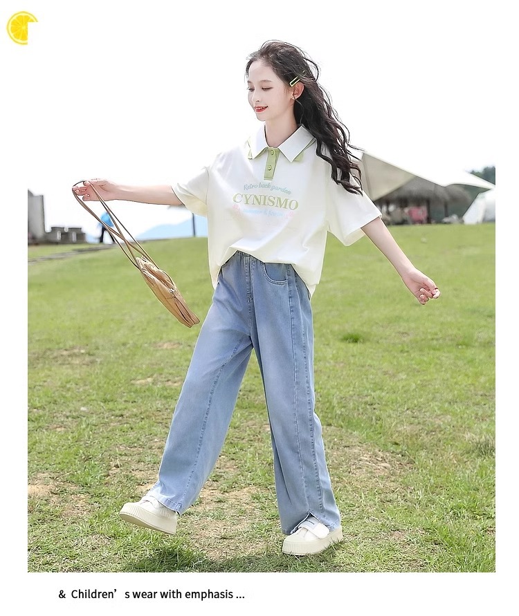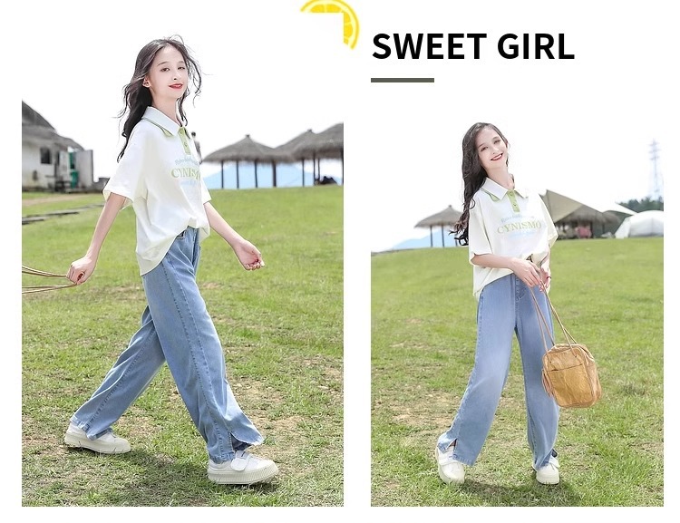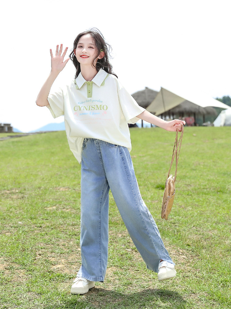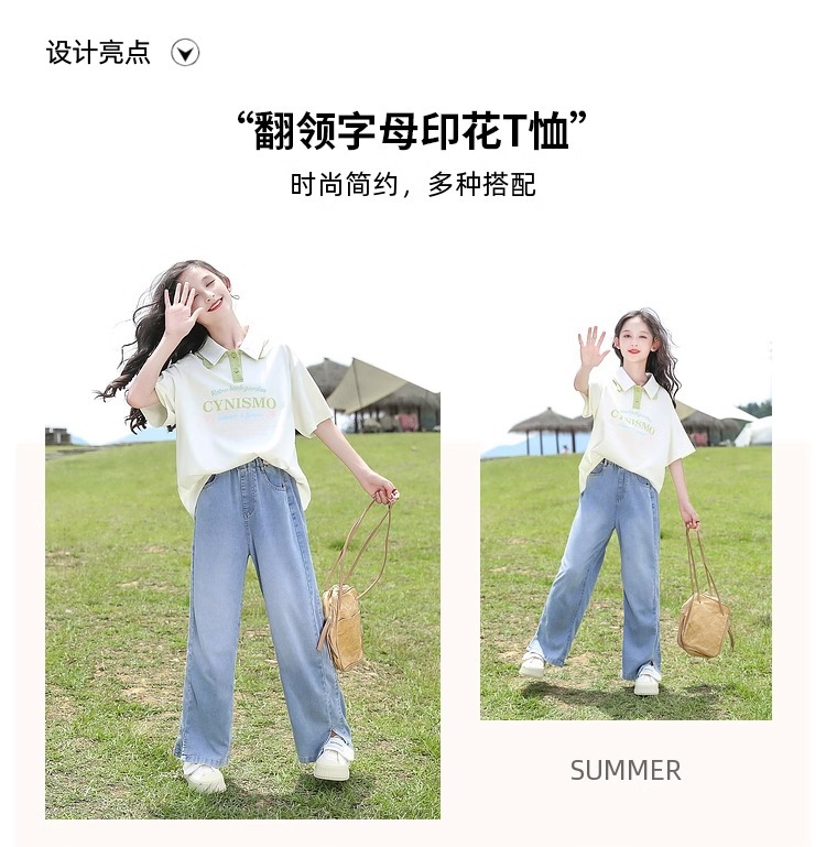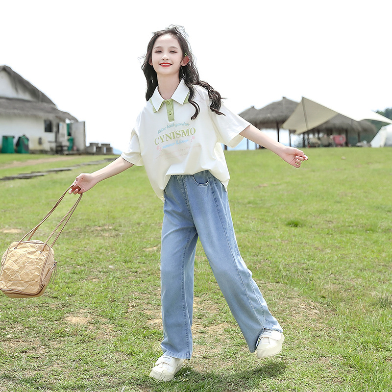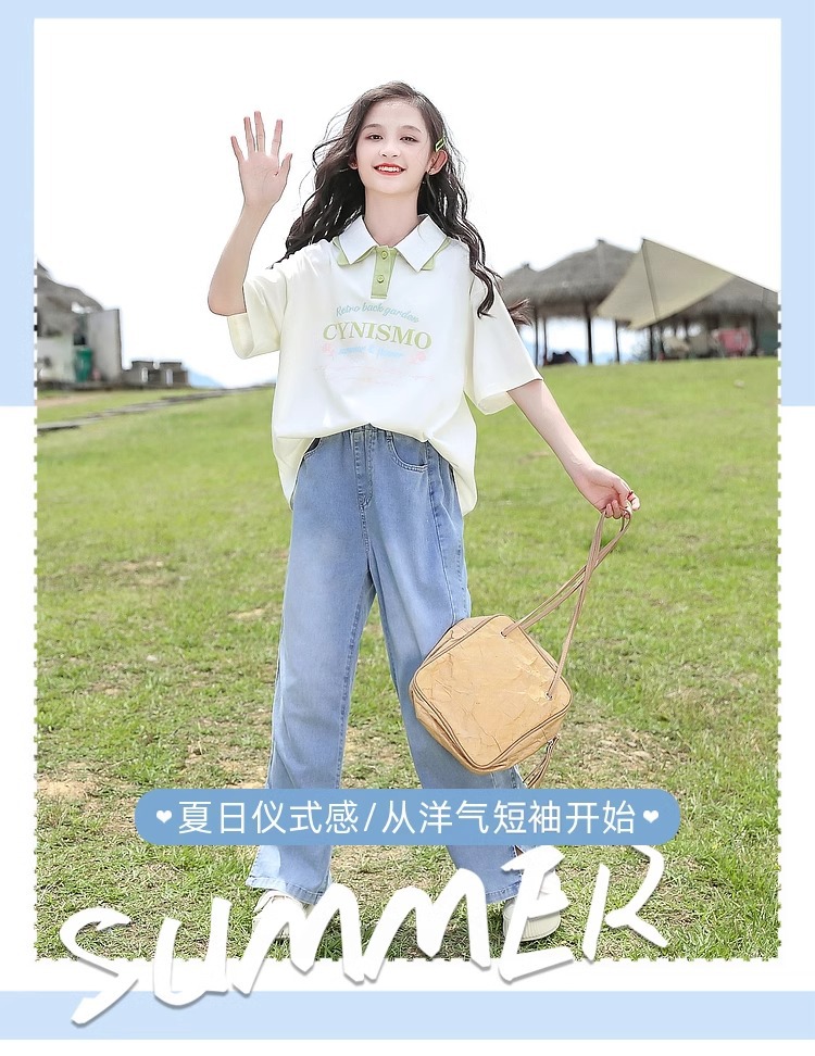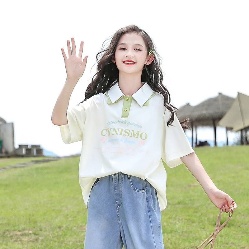 아동복 여아 여름복 여아 반팔 티셔츠 2025 새로운 스타일의 중대형 어린이 폴로 셔츠 여성 학생 패션 탑스토어 가기