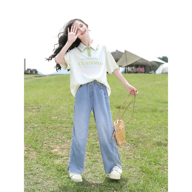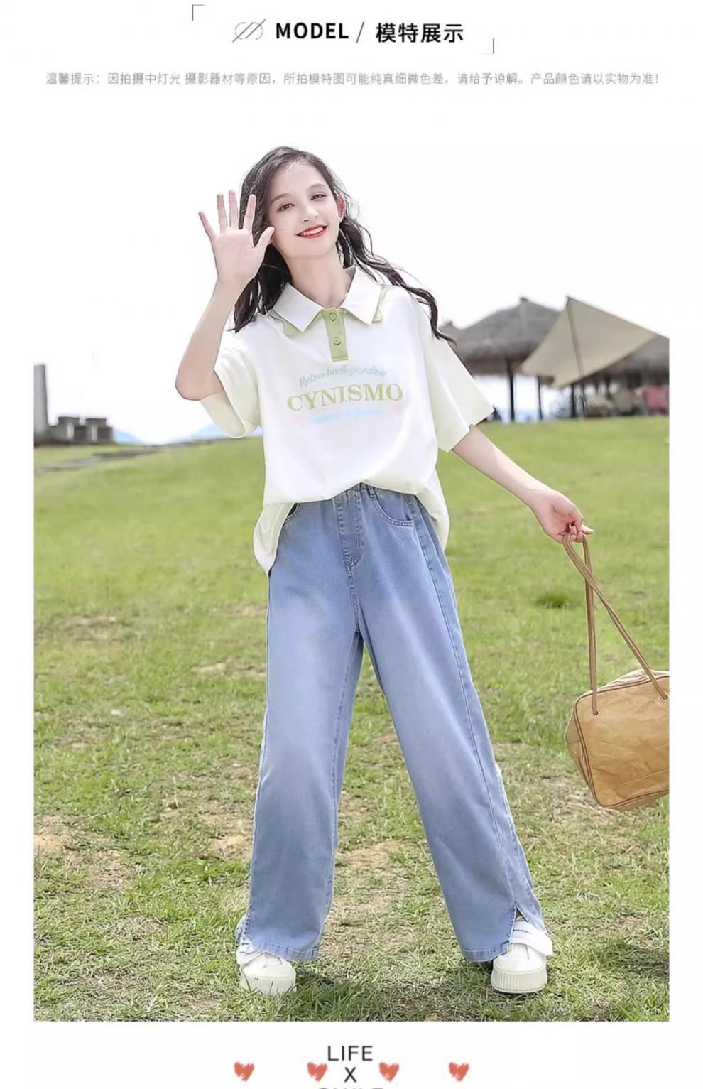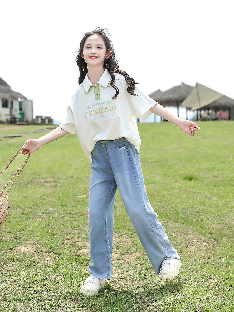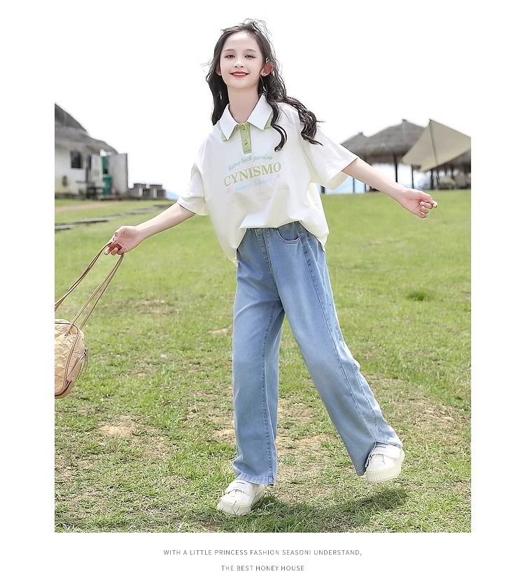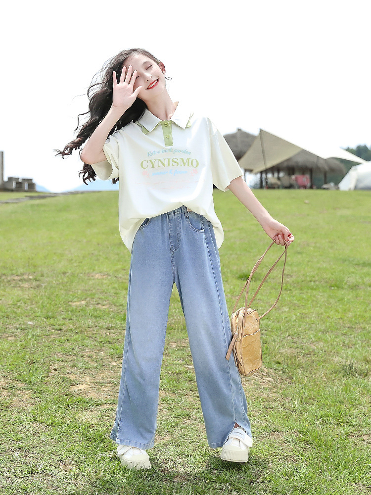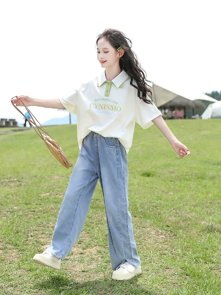 아동복 여아 여름복 여아 반팔 티셔츠 2025 새로운 스타일의 중대형 어린이 폴로 셔츠 여성 학생 패션 탑스토어 가기