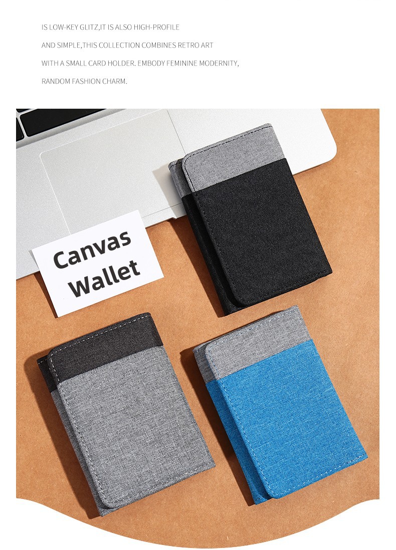 70% off 캔버스 지갑 남학생 짧은 동전 지갑 ID 카드 홀더 멀티 카드 슬롯 세로 스타일 얇은 지갑 지갑