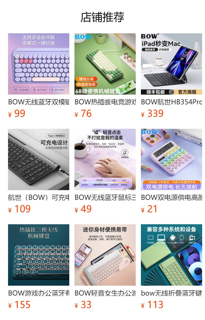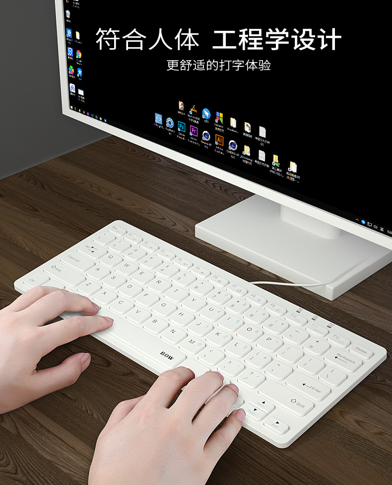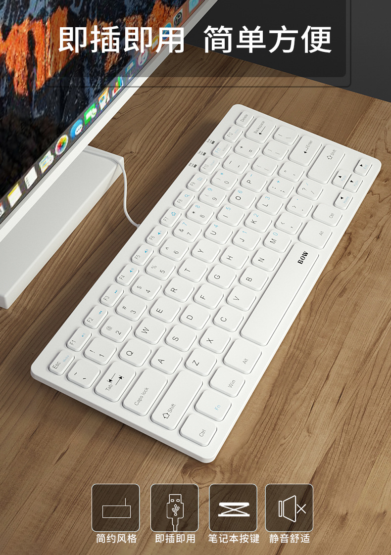 BOW 유선 키보드 HW098A 외부 노트북 음소거 소프트 사운드 usb 오피스 타이핑 소스 공장스토어 가기