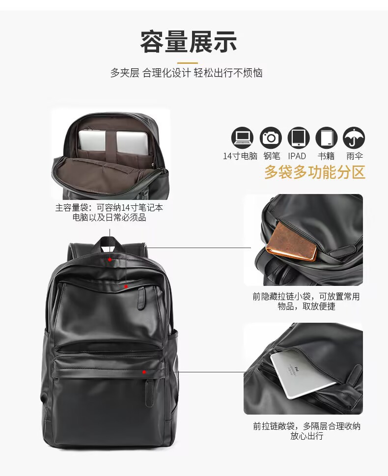 남자 배낭 가죽 대용량 여행 배낭 중학교 고등학교 고등학생 학생 유행 남자 가방 컴퓨터 가방
