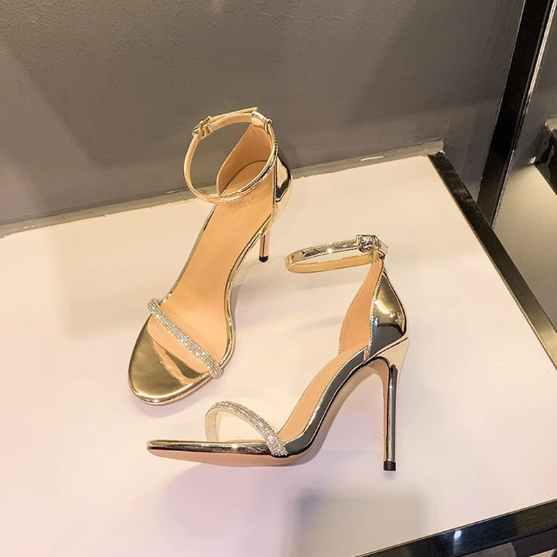 라인스톤 하이힐 여자 2024 년 여름 뉴 오픈 발가락 샌들 섹시한 사교계 스타일 에티켓 스틸레토 슈즈스토어 가기