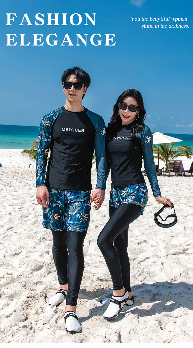 한국 신상 커플 다이빙 슈트 분리형 긴팔 자외선 차단 수영복 보수적인 휴가용 여름 해외 무역 수영복