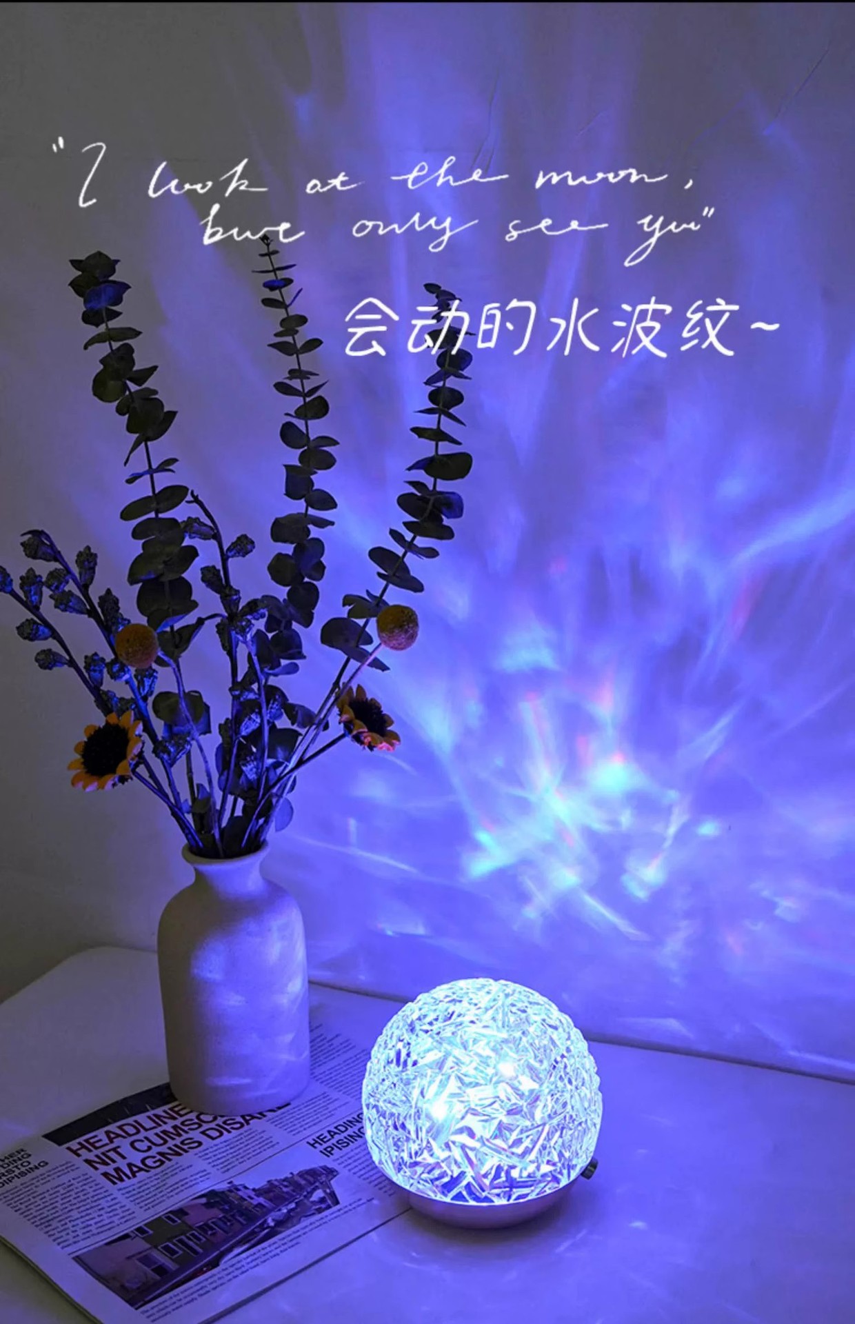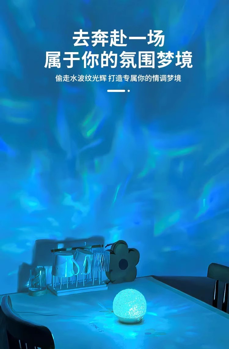 회전 물 리플 램프 나이트 라이트 분위기 램프 침실 조명 물 패턴 램프 침대 옆 램프 프로젝션 오로라 선물스토어 가기