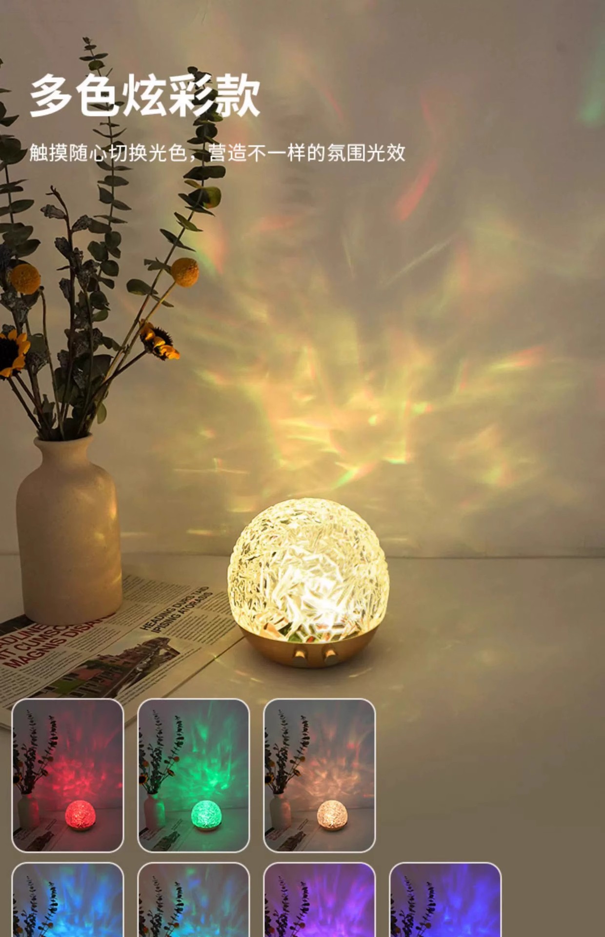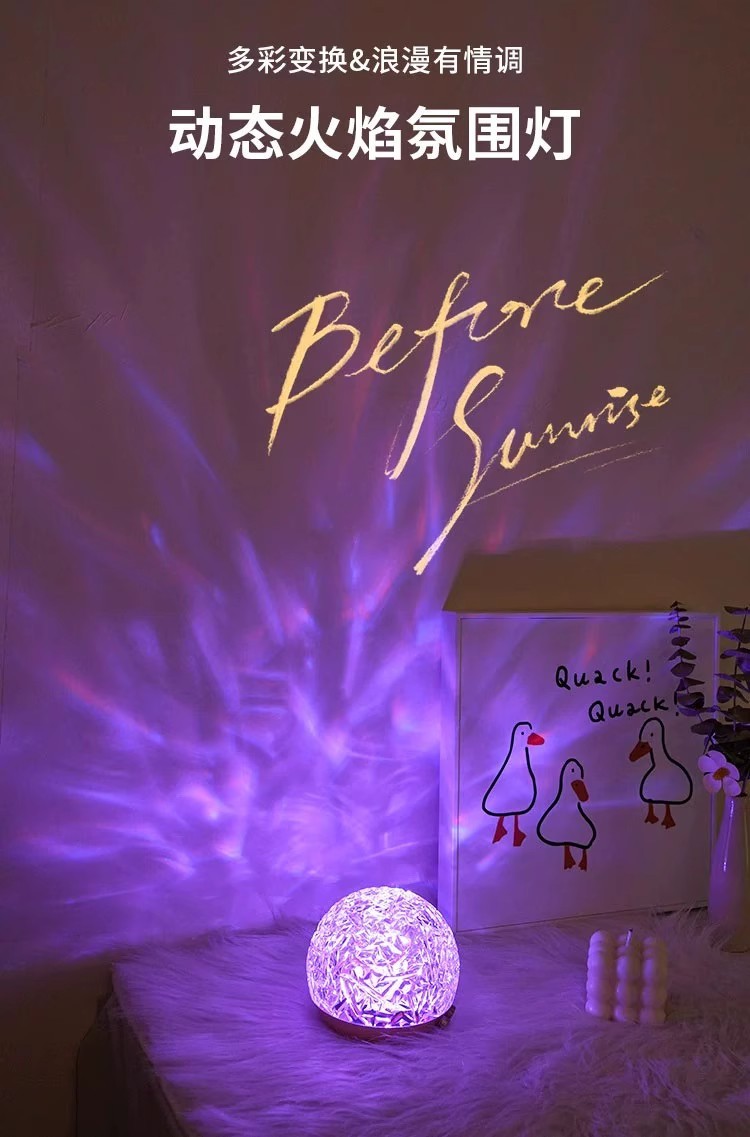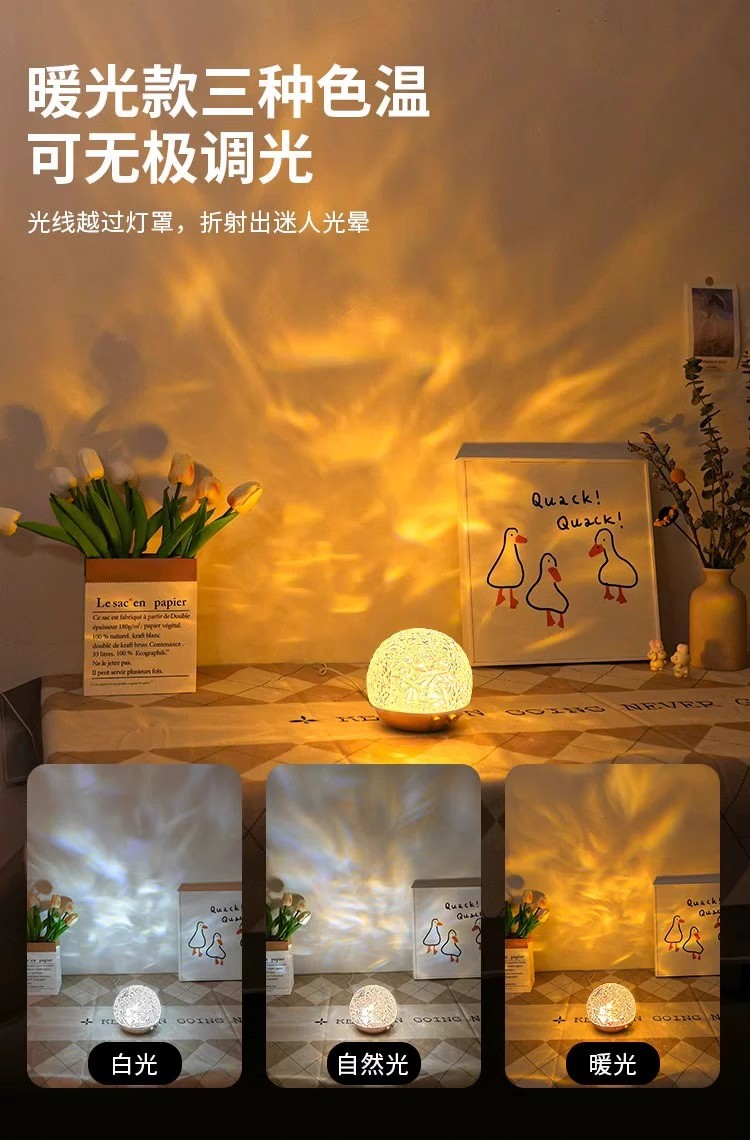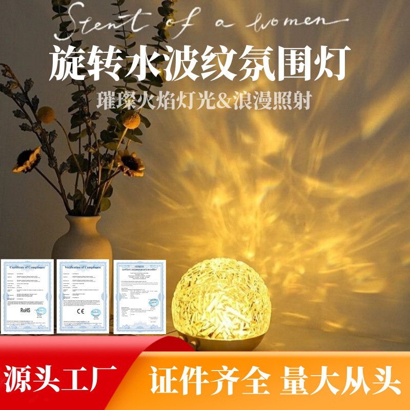 회전 물 리플 램프 나이트 라이트 분위기 램프 침실 조명 물 패턴 램프 침대 옆 램프 프로젝션 오로라 선물