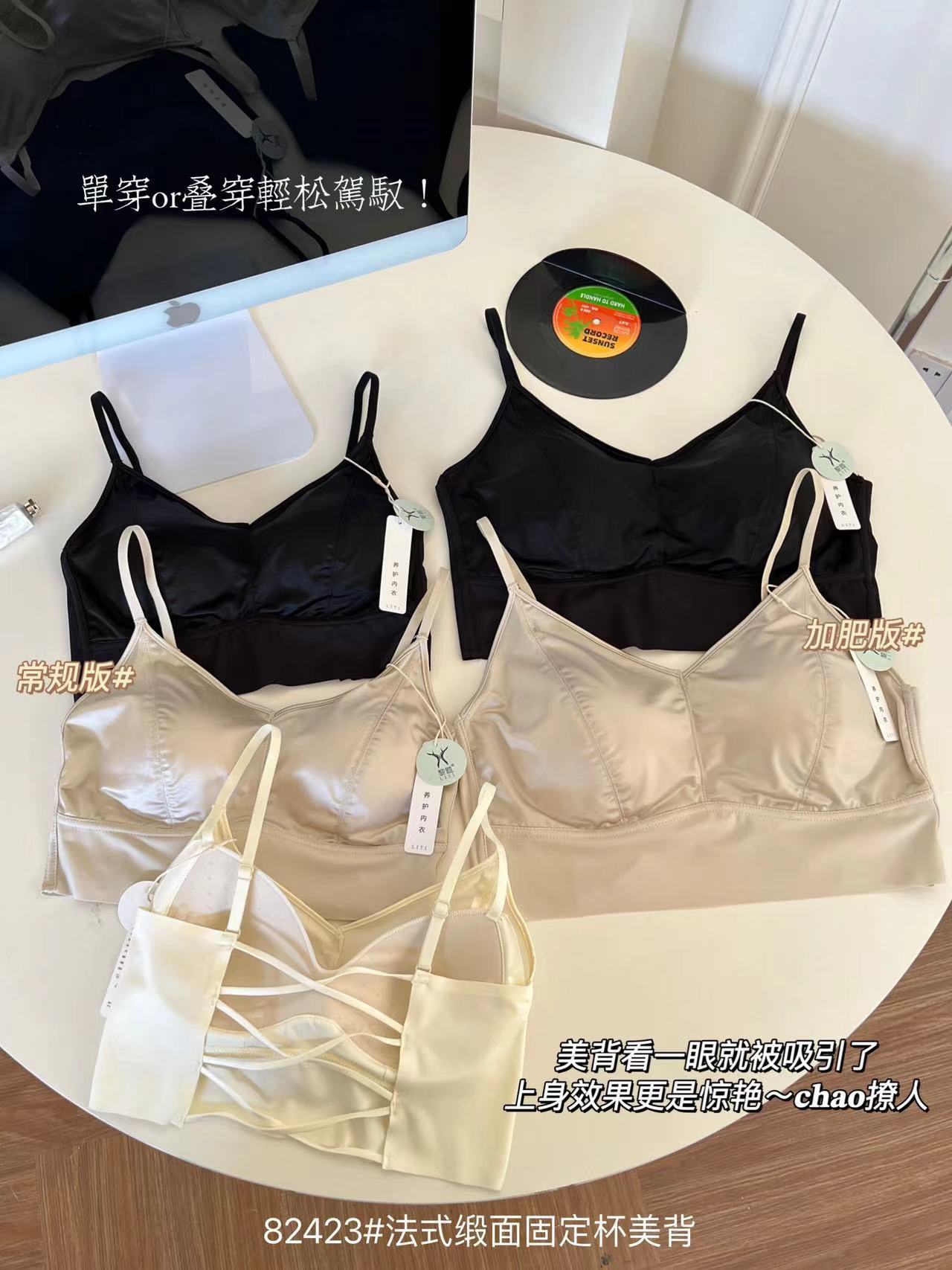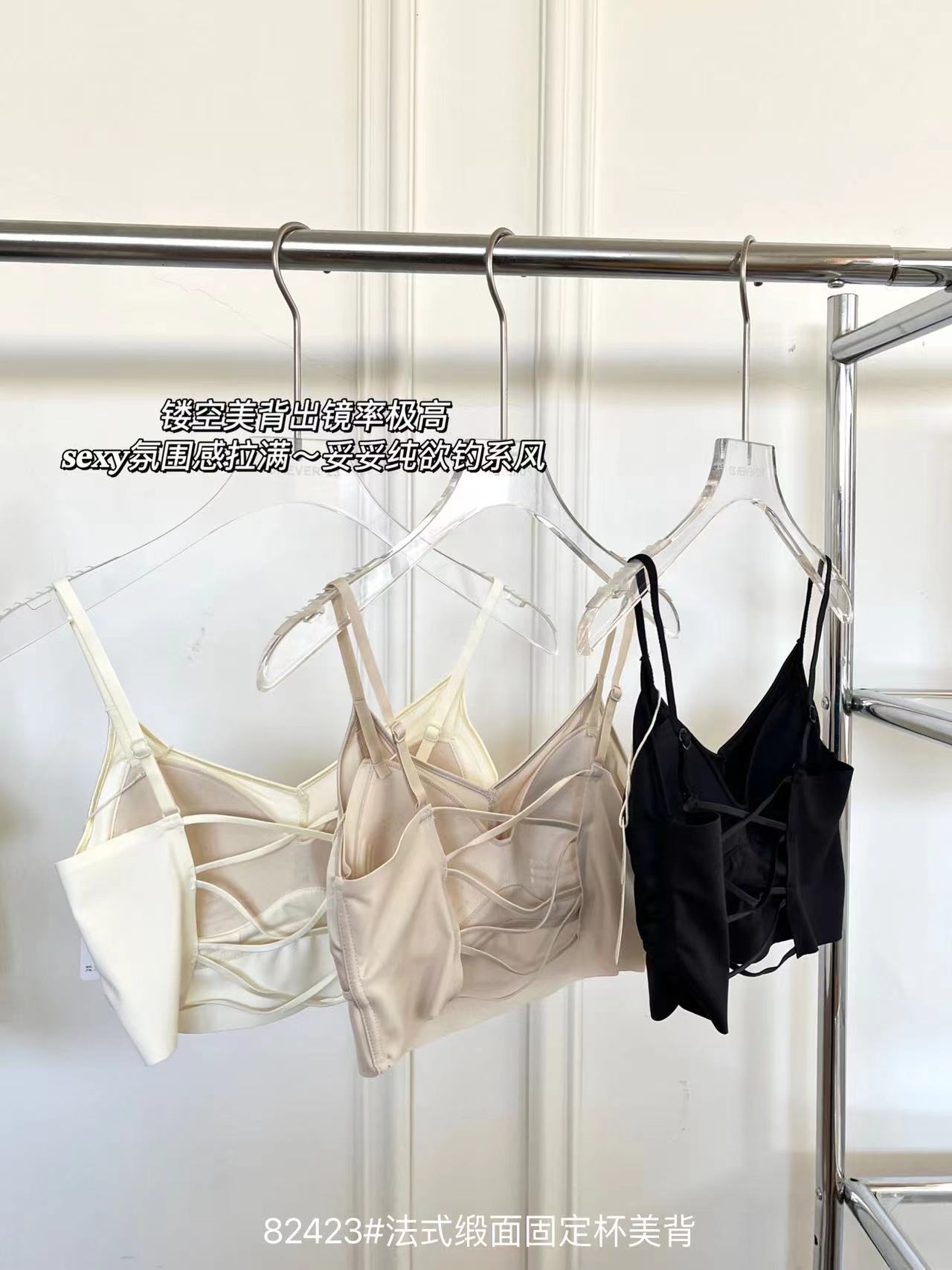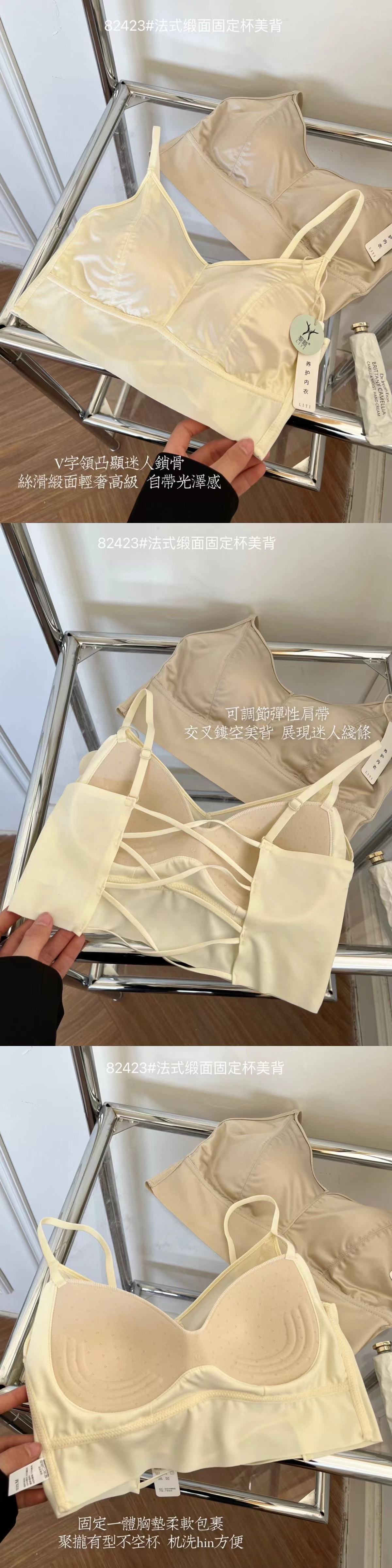 82423#法式缎面固定杯美背