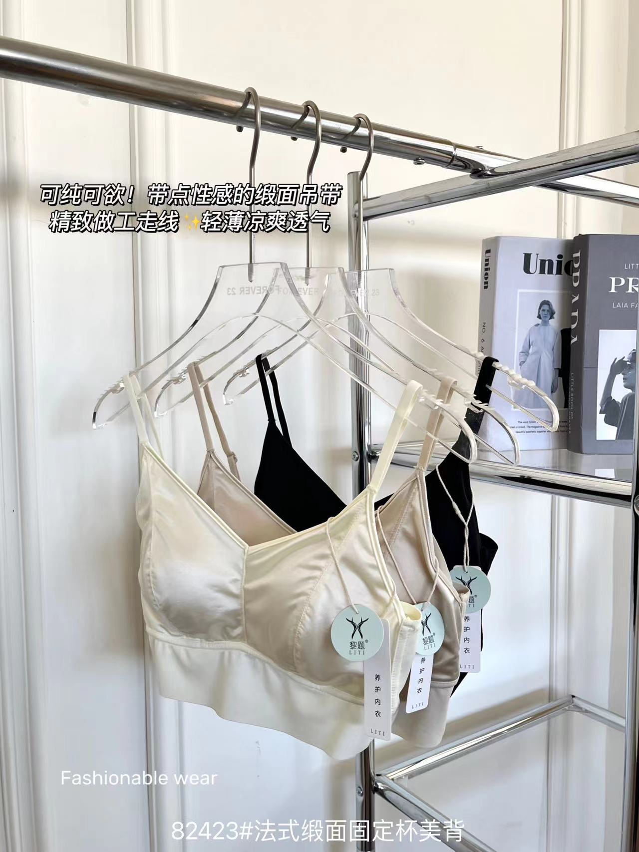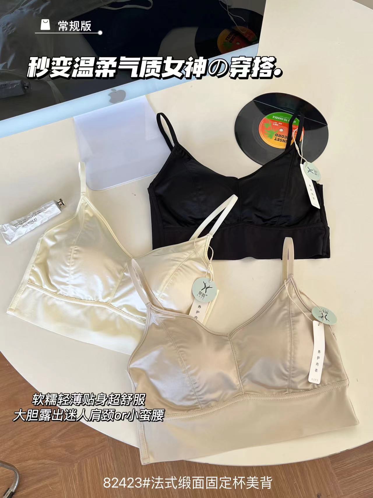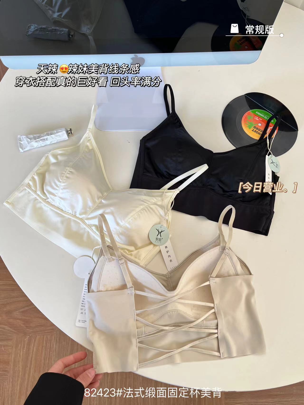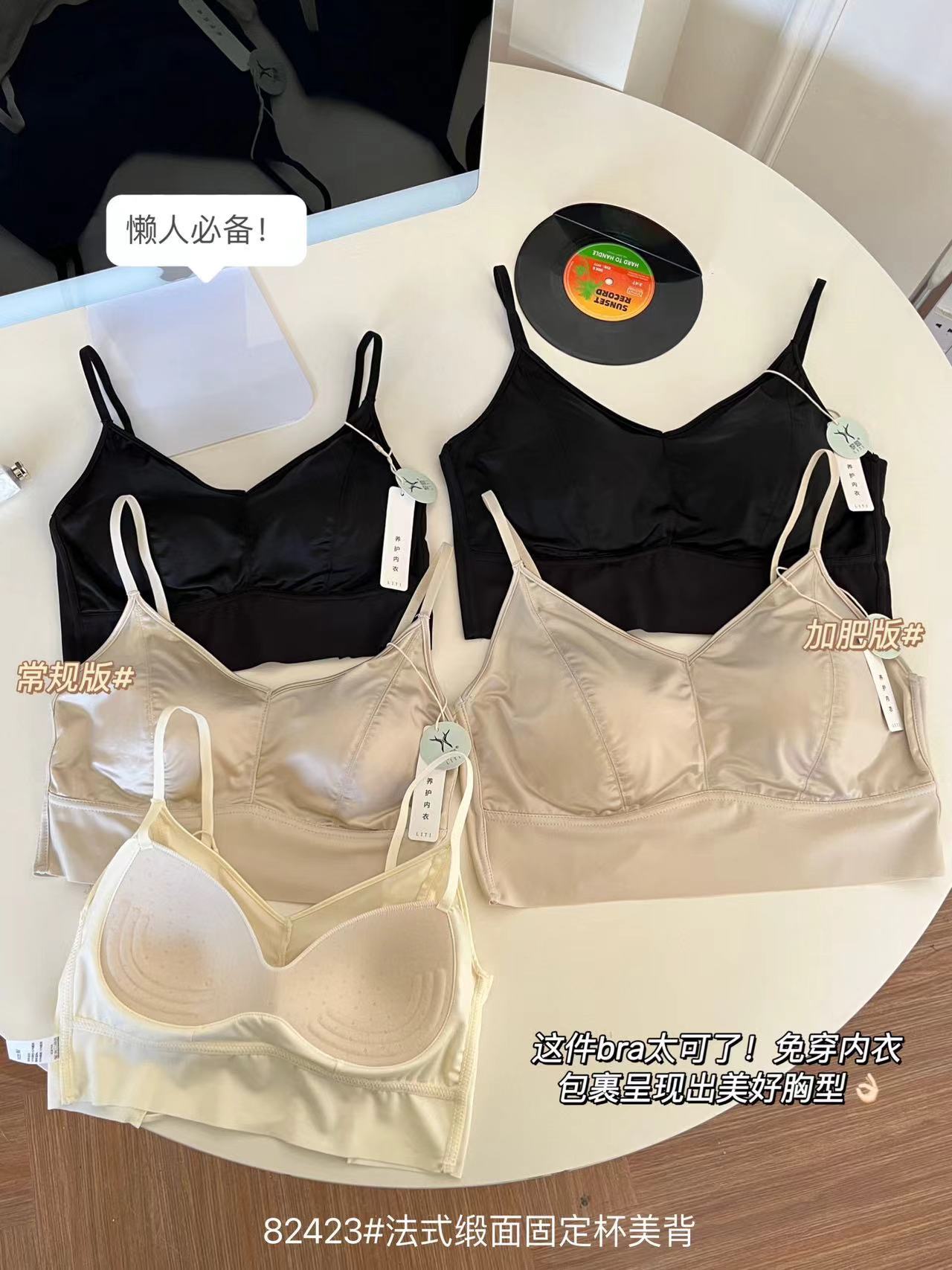 82423#法式缎面固定杯美背