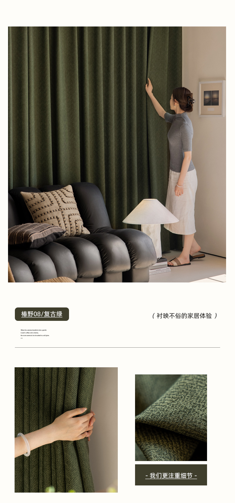 레드크로우 인터넷 유명인 참야생물 뼈무늬 면마 자카드 암막 커튼, 중세풍 메일라드 컬러 시리즈 크림 스타일