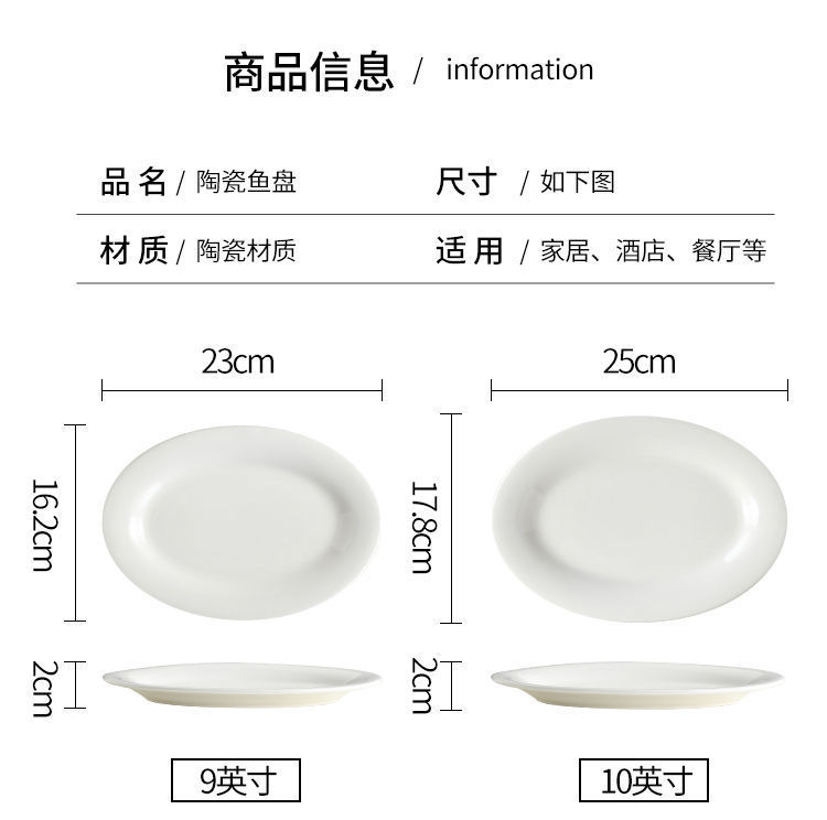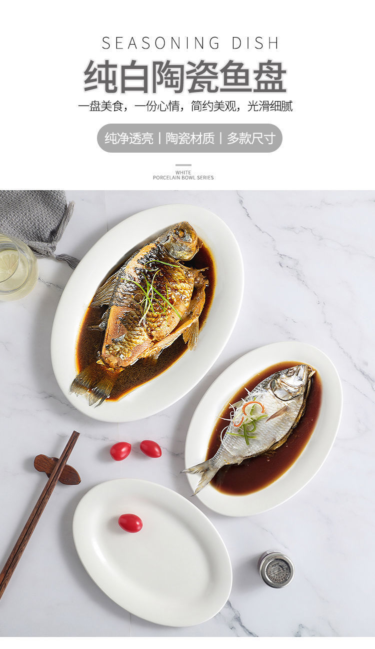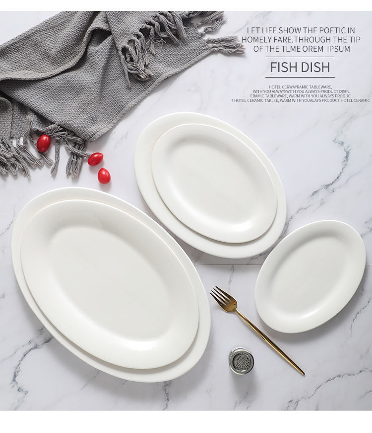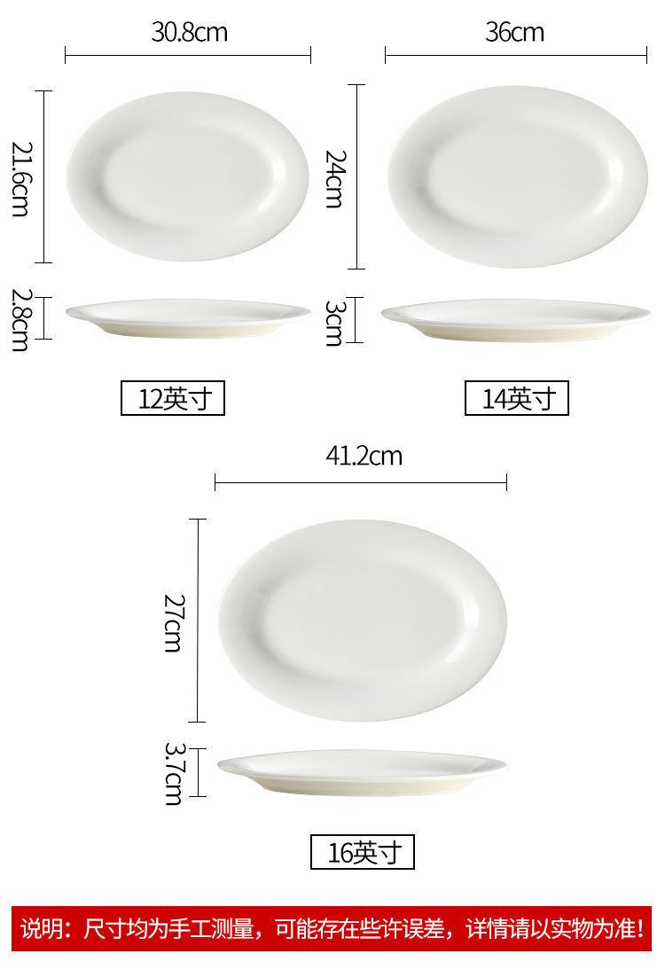 화이트 세라믹 10/12/14/16 "타원형 찐 어판 대형 해산물 접시 접시 밥 밥 그릇 판 어판 공장스토어 가기