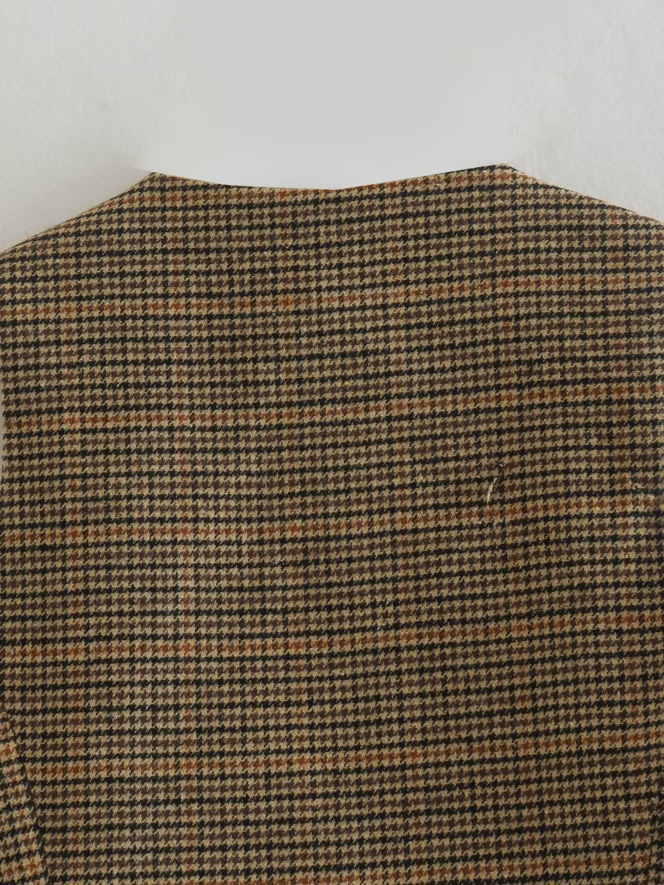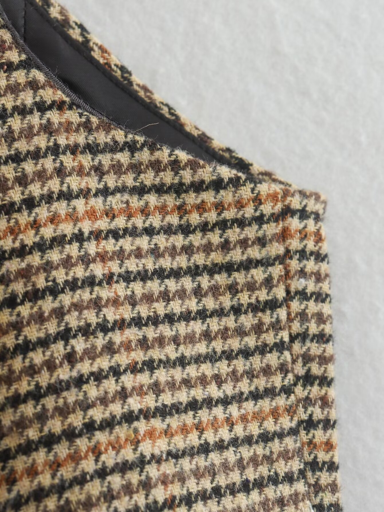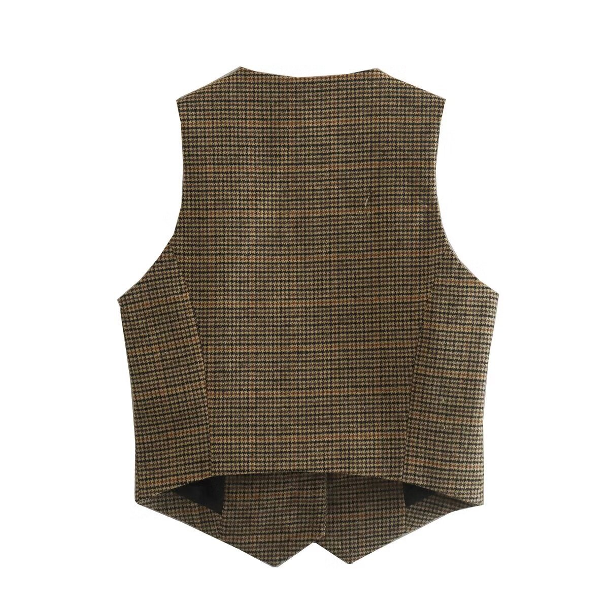 국경 간 여성 2024 년 봄과 가을 새로운 유럽과 미국 패션 Houndstooth 조끼 조끼 웨이스트 코트 여성 탑스토어 가기