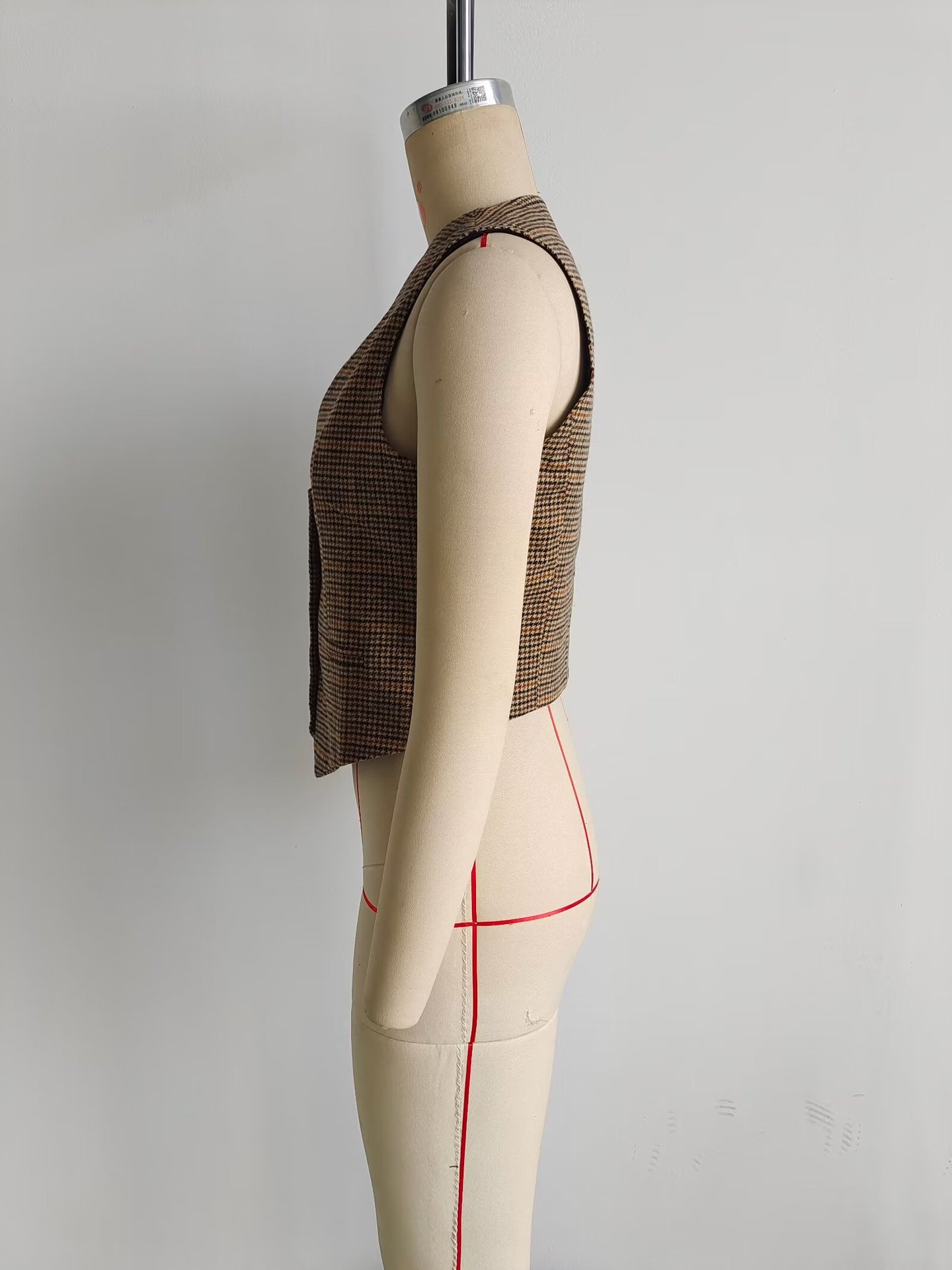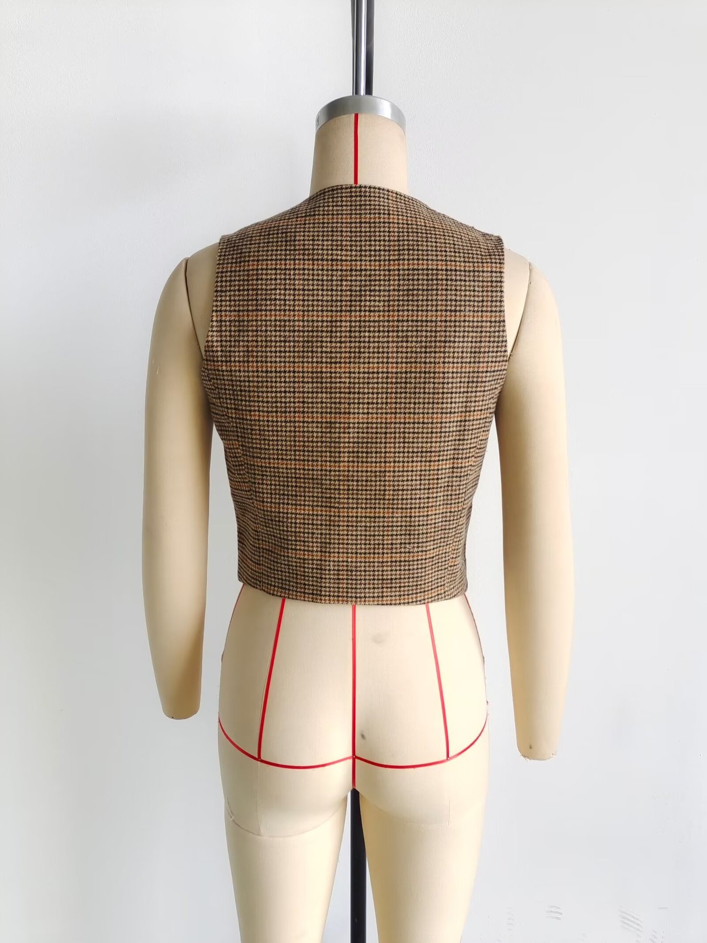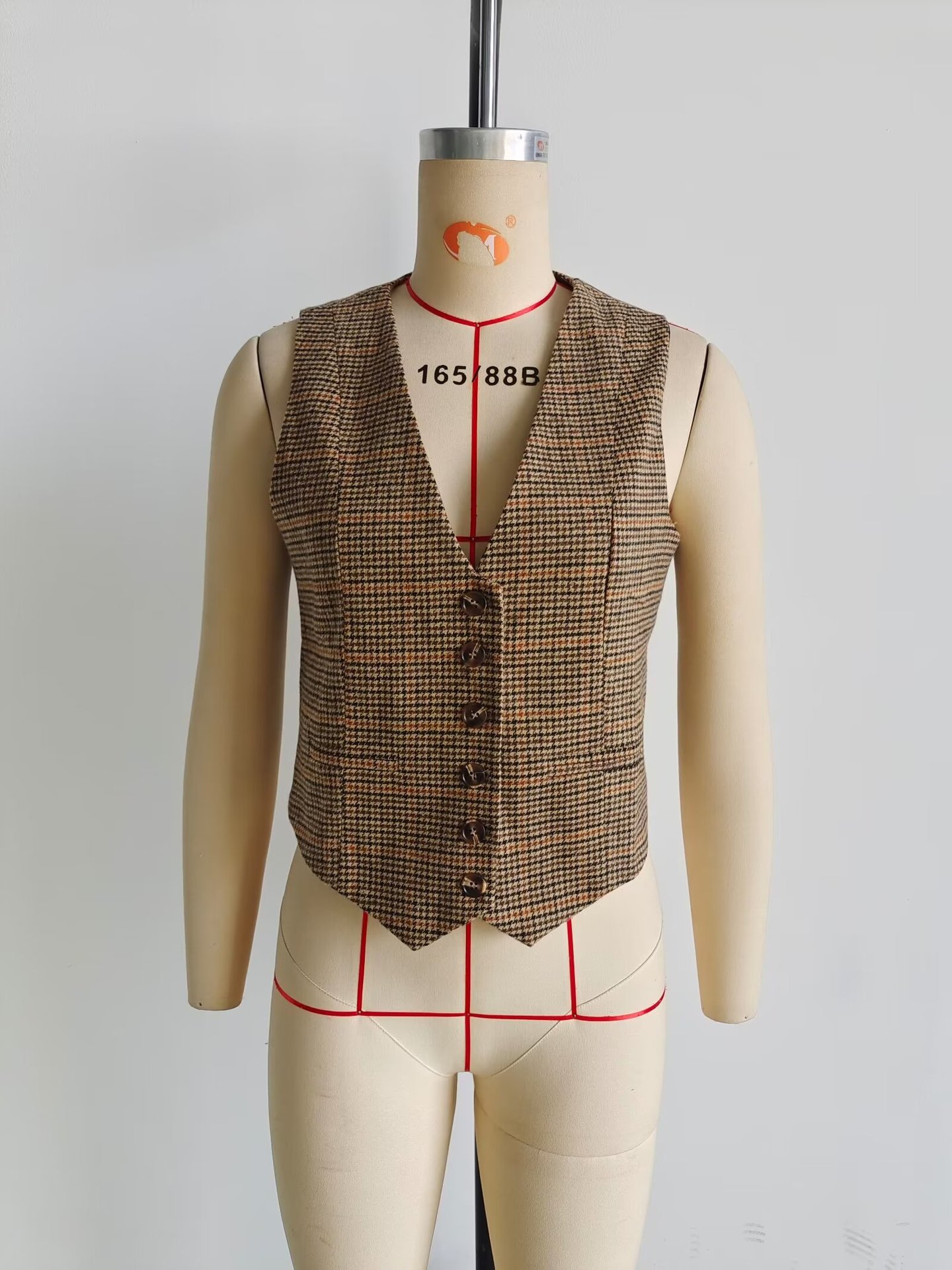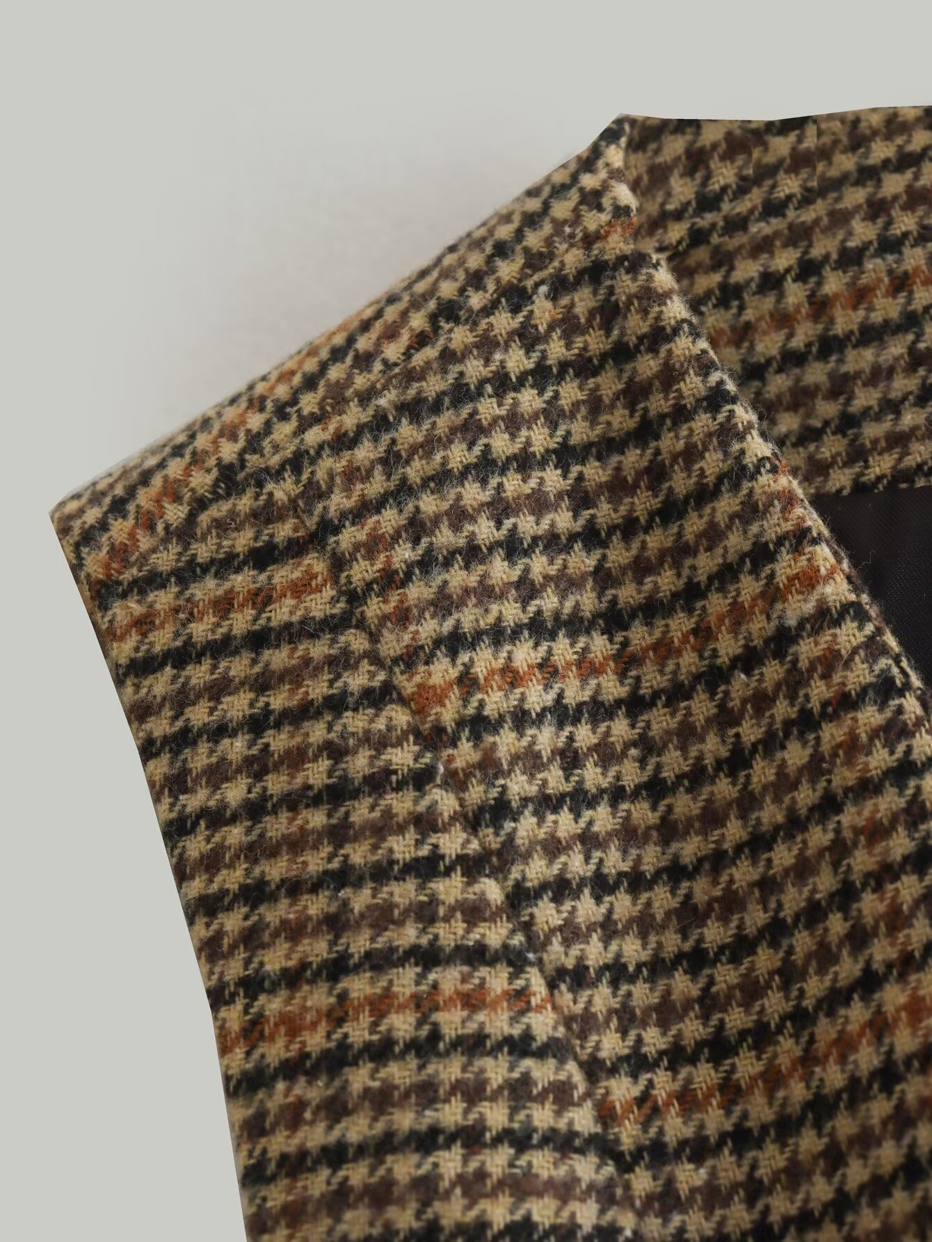 국경 간 여성 2024 년 봄과 가을 새로운 유럽과 미국 패션 Houndstooth 조끼 조끼 웨이스트 코트 여성 탑스토어 가기
