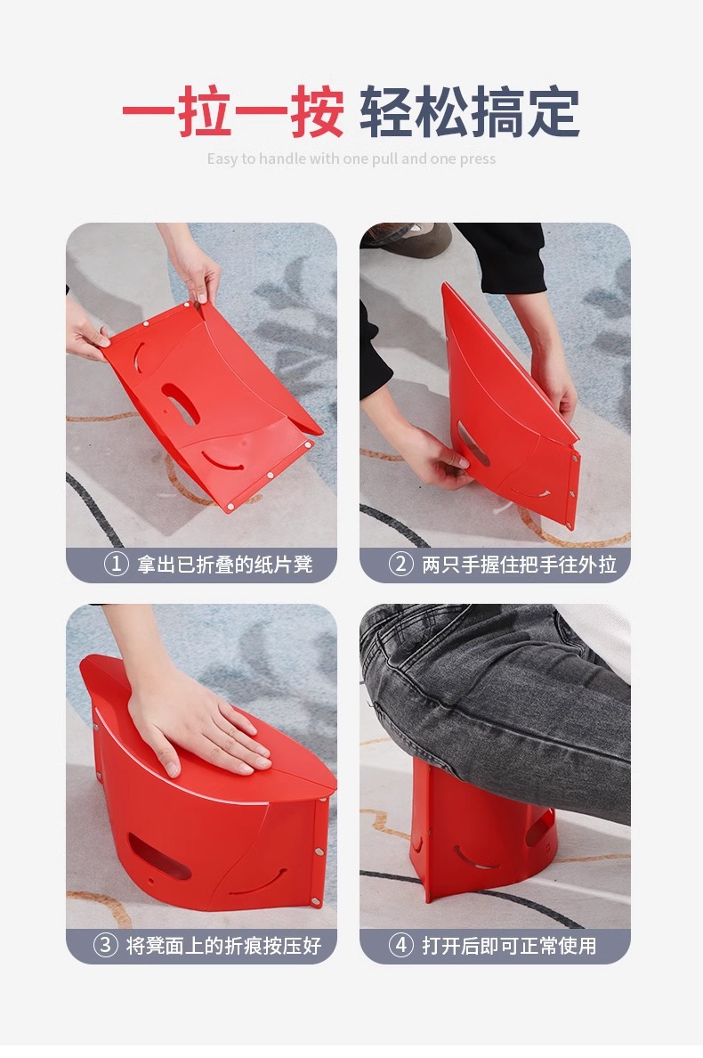 접이식 의자 플라스틱 작은 마자르 여행 야외 여행 기차 휴대용 의자 울트라 얇은 종이 낮은 의자 성인 가정스토어 가기