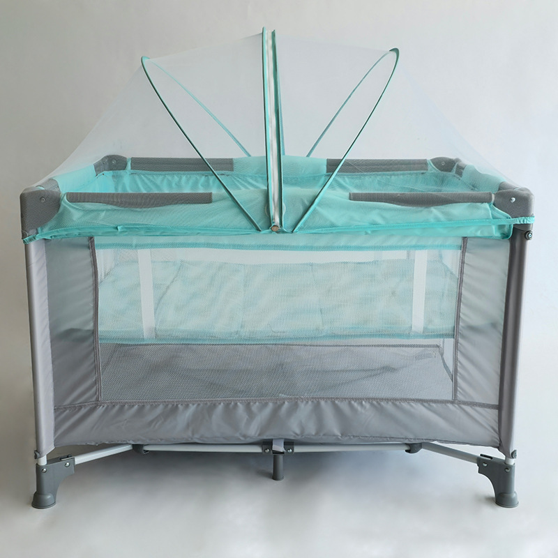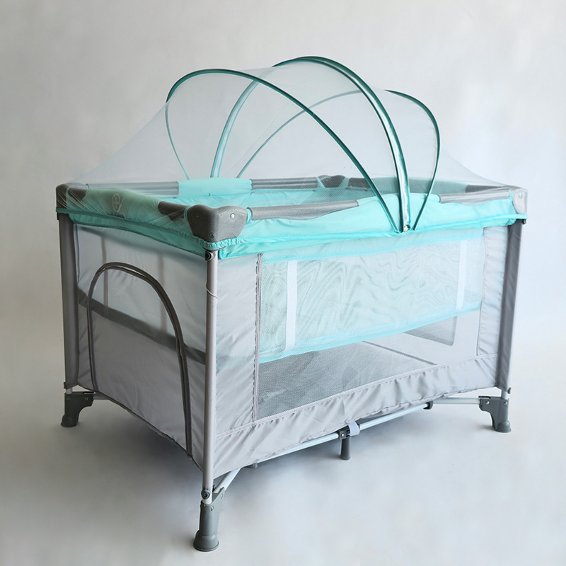 모기 그물 게임 구멍 기저귀가 장착 된 다기능 아기 게임 침대 1 버튼 접이식 이동식 2 층 침대