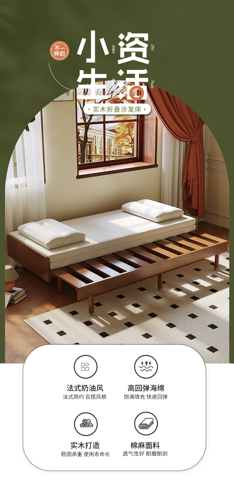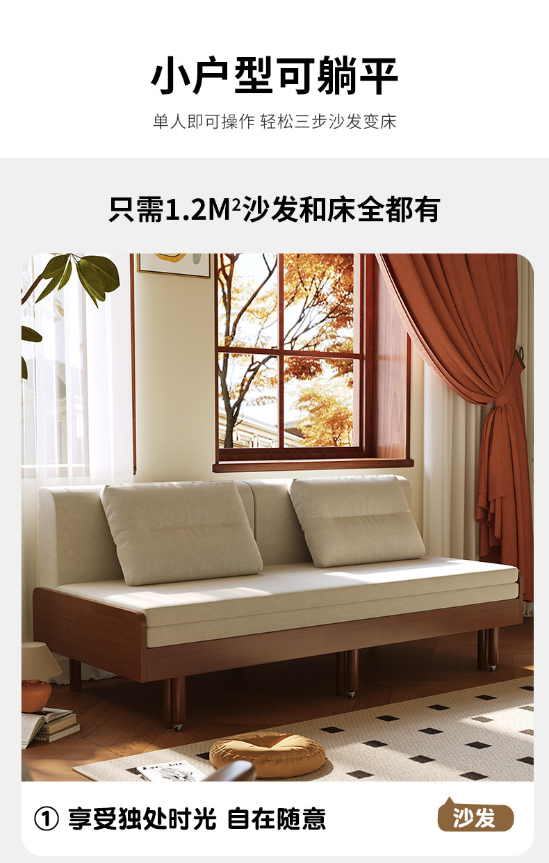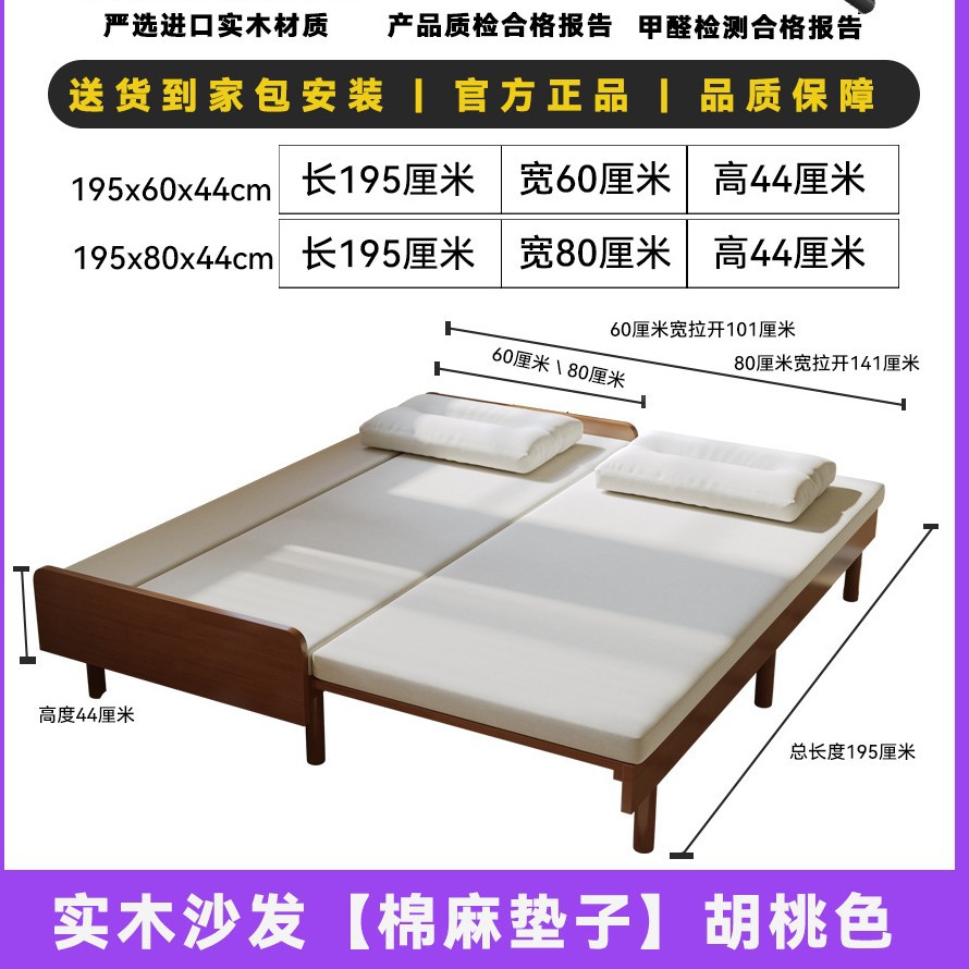 솔리드 우드 소파 침대 접이식 이중 목적 추출기 침대 작은 아파트 거실 24 새로운 다기능 앉고 편안한 낮잠 확장 가능한 침대