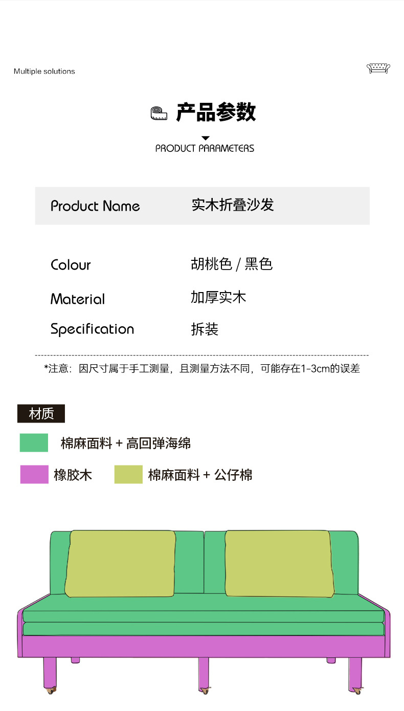 • 단단한 나무 소파 침대 코듀로이 리바운드 스폰지 쿠션 [호두 색상