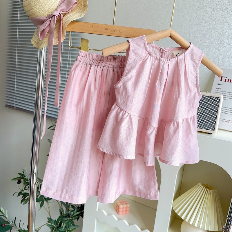 한국 스타일 아동복 2025 여름 신상 여아용 베이비셔츠 조끼 와이드 팬츠 투피스 캐주얼 여름옷스토어 가기