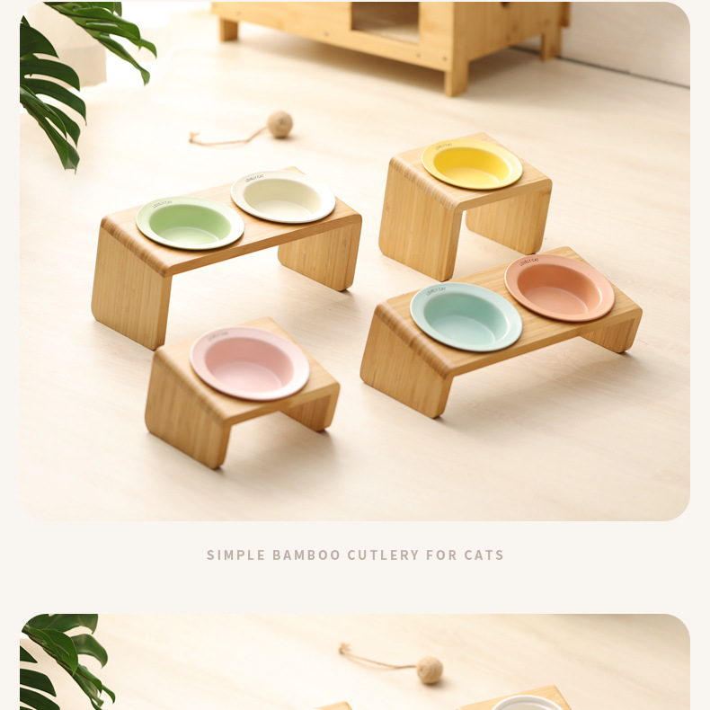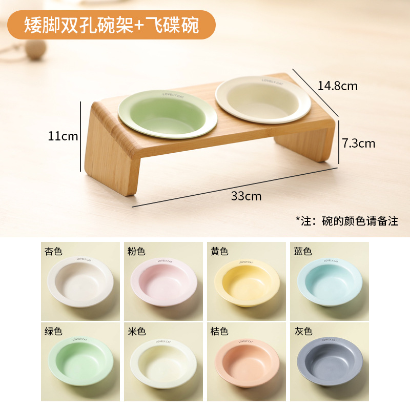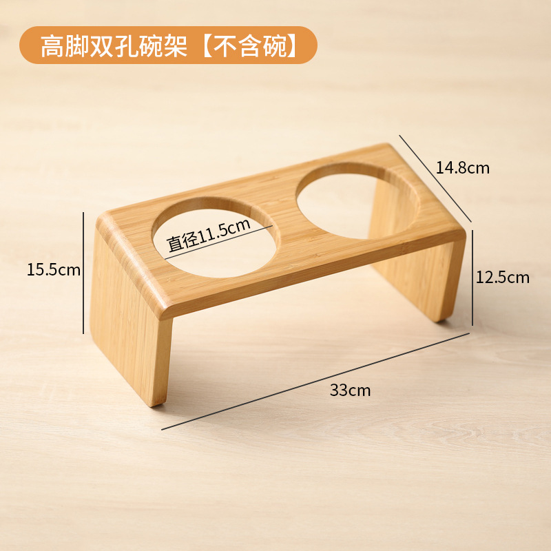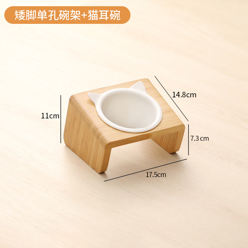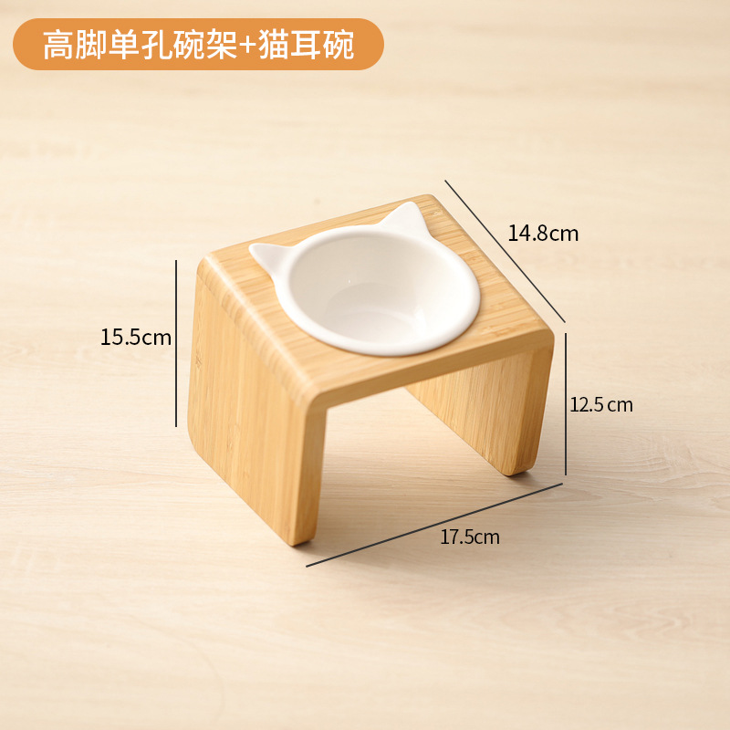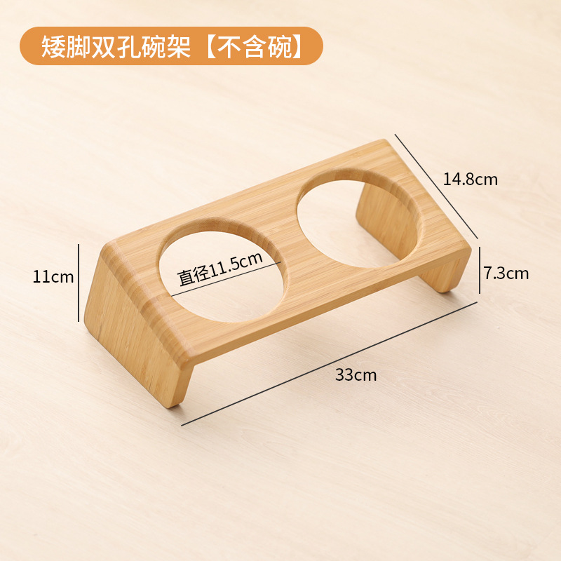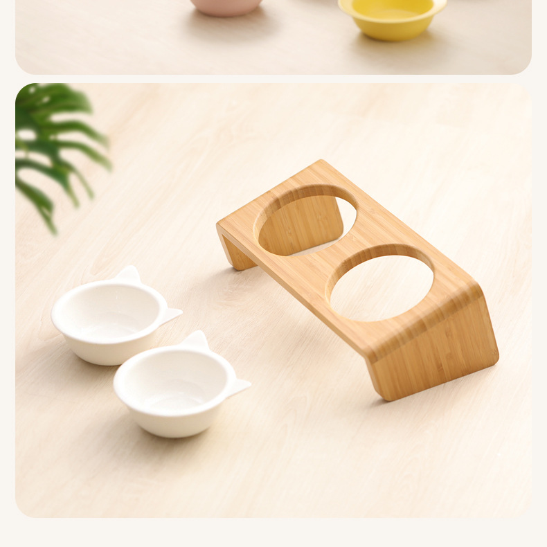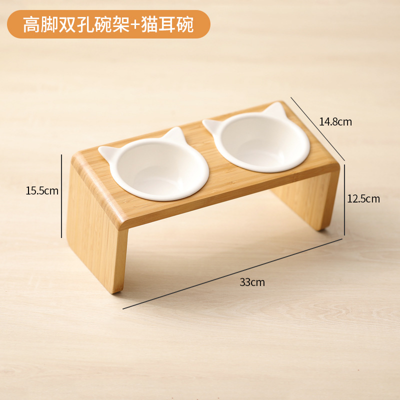 고양이 밥그릇 받침대, 대나무 애완견 밥그릇 받침대, 넘어짐 방지, 높이 조절 가능, 경추 보호, 세라믹 고양이 사료 이중 그릇 도매