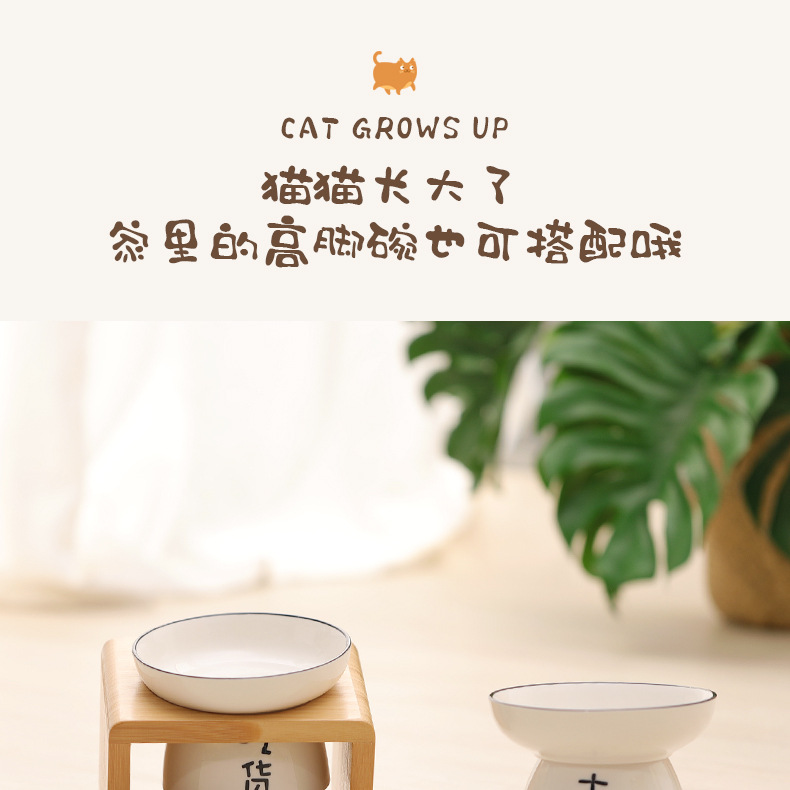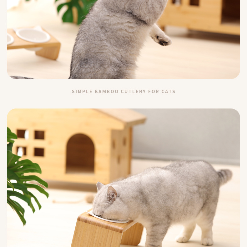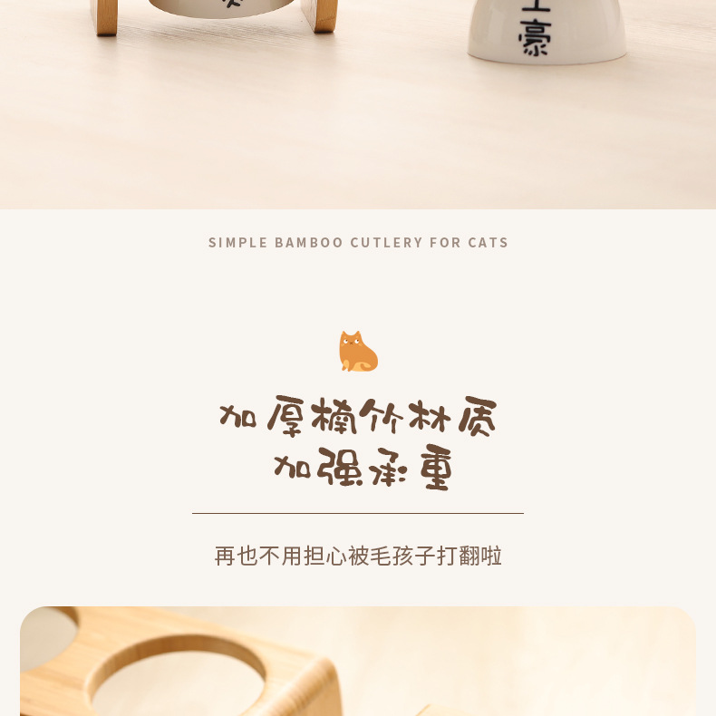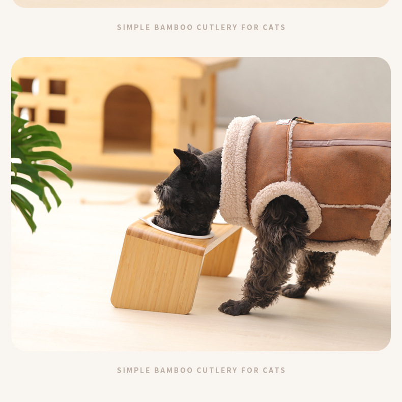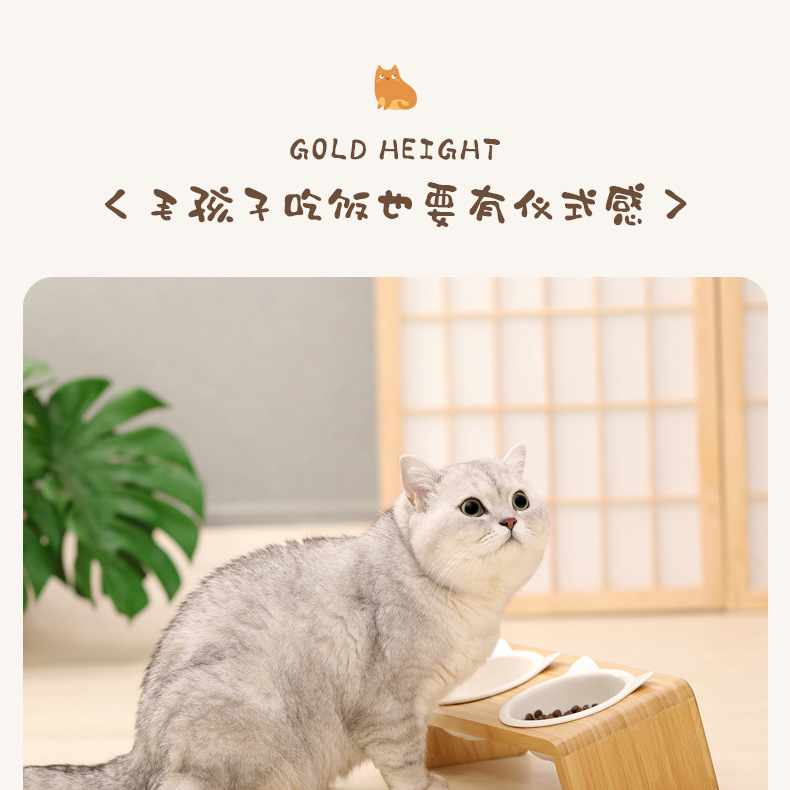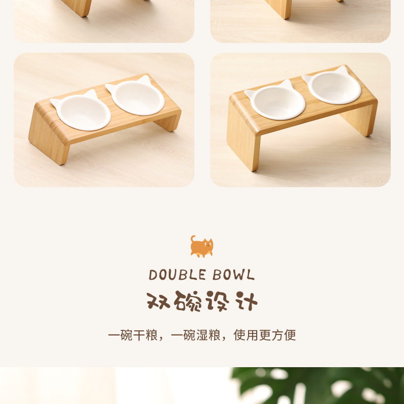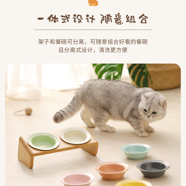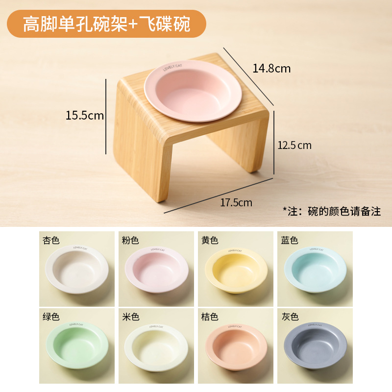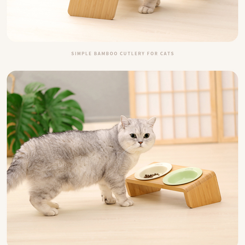 고양이 밥그릇 받침대, 대나무 애완견 밥그릇 받침대, 넘어짐 방지, 높이 조절 가능, 경추 보호, 세라믹 고양이 사료 이중 그릇 도매