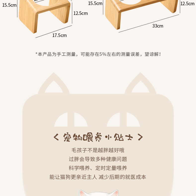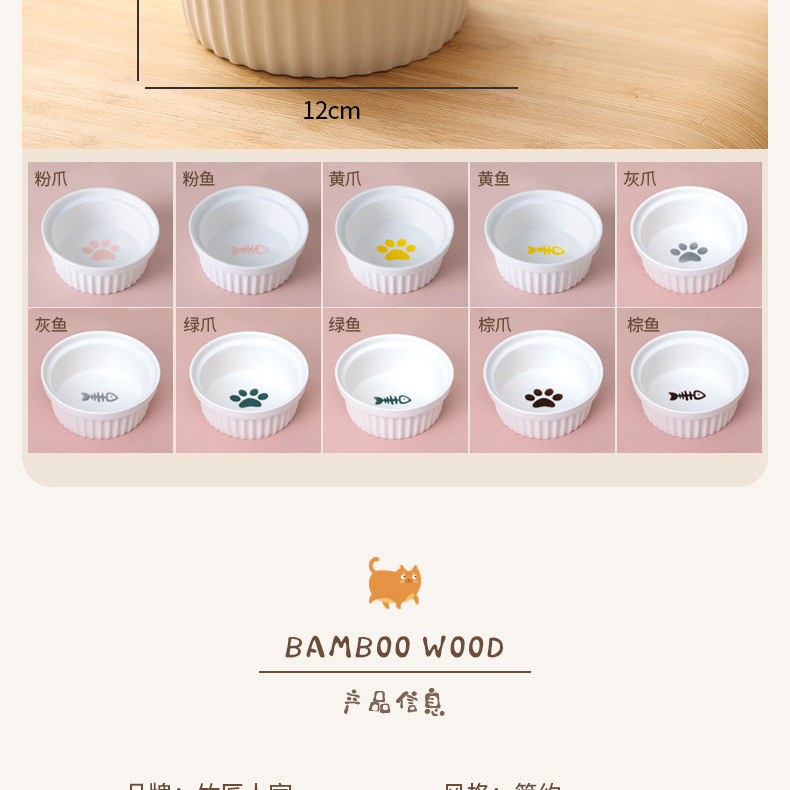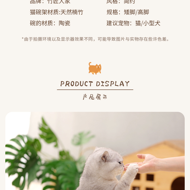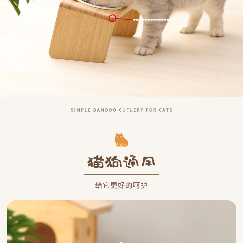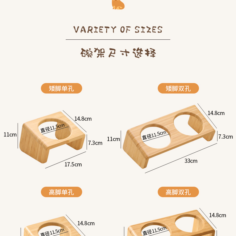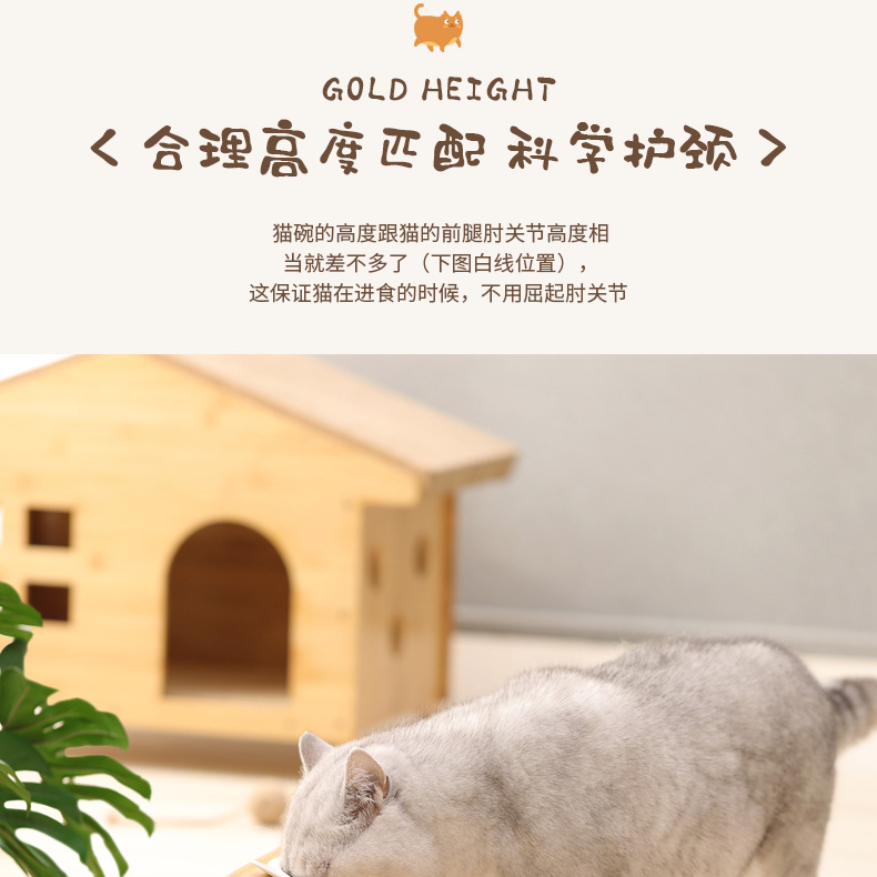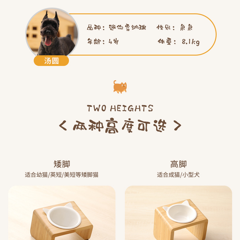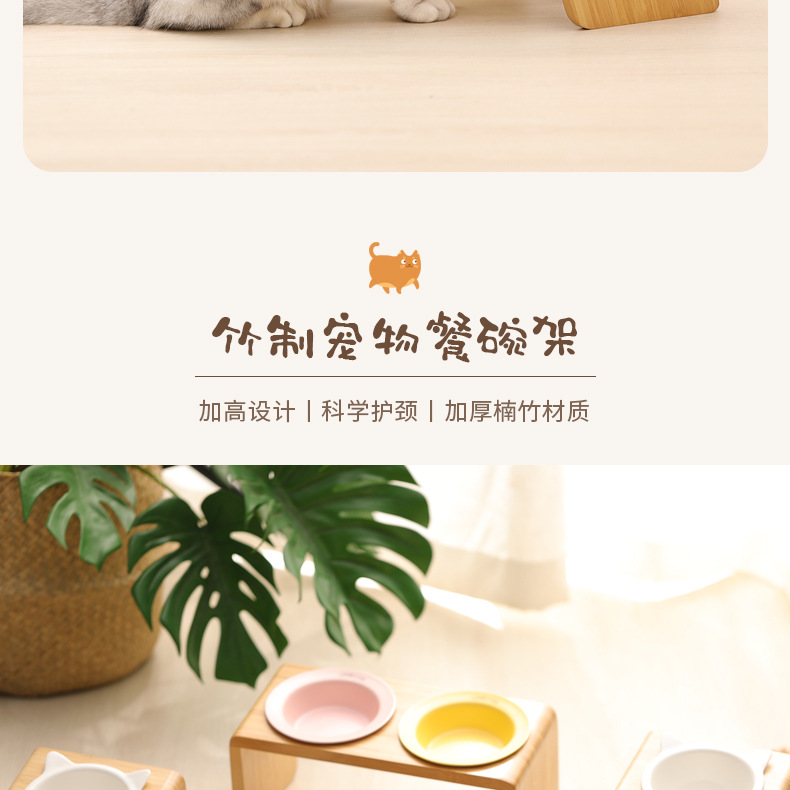 고양이 밥그릇 받침대, 대나무 애완견 밥그릇 받침대, 넘어짐 방지, 높이 조절 가능, 경추 보호, 세라믹 고양이 사료 이중 그릇 도매