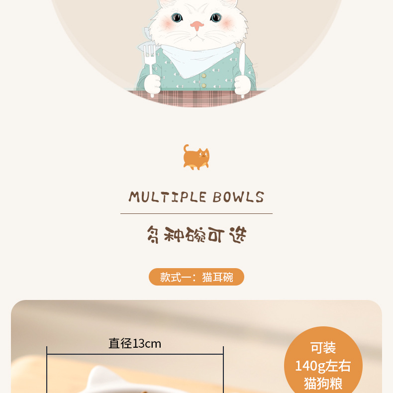 • 키가 큰 단일 구멍 그릇 랙 + 고양이 귀 그릇