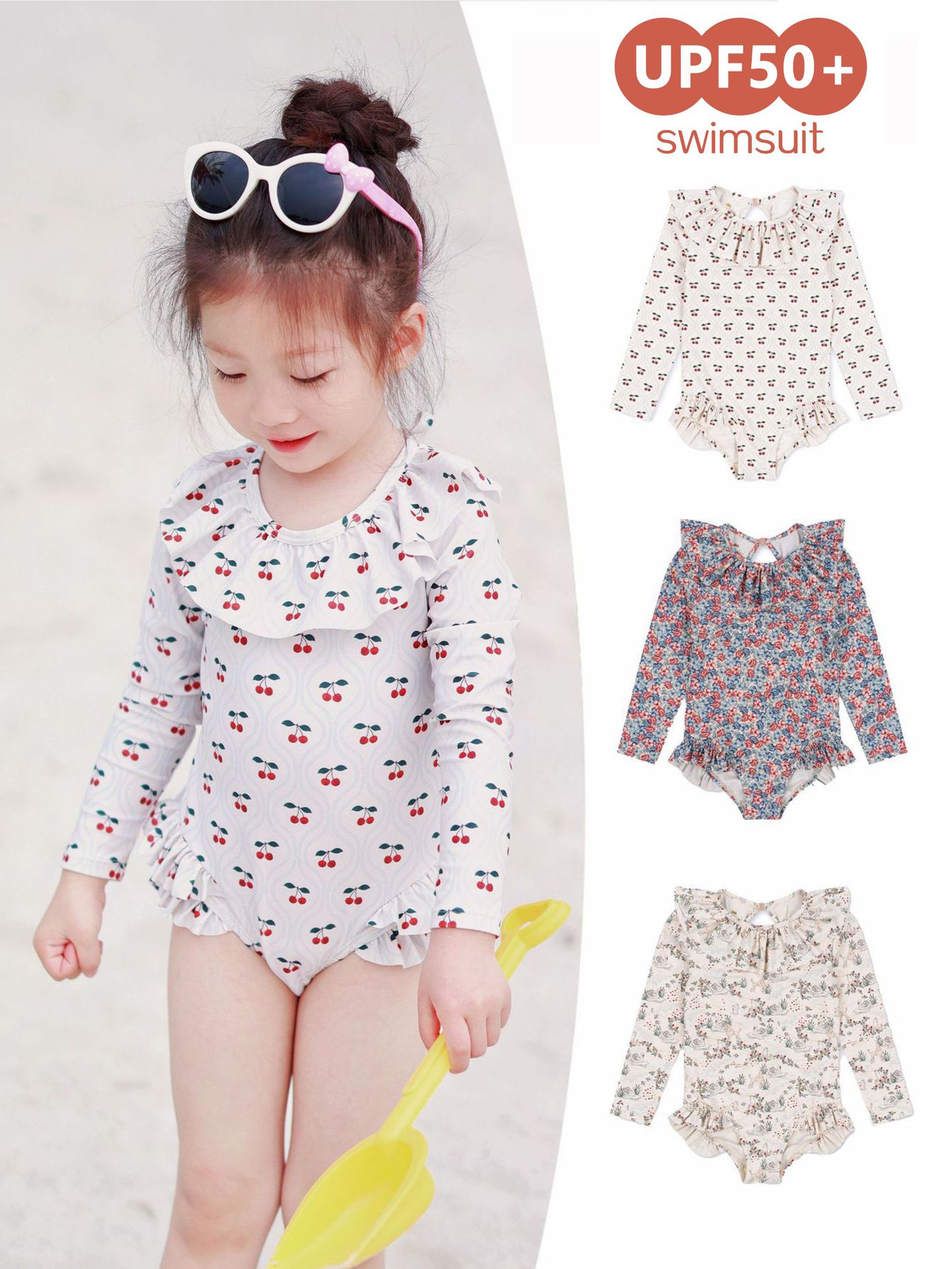 여아 수영복 2026 신상 ks 프린트 달콤하고 귀여운 여아 수영복 여름 긴팔 원피스 자외선 차단 수영복스토어 가기