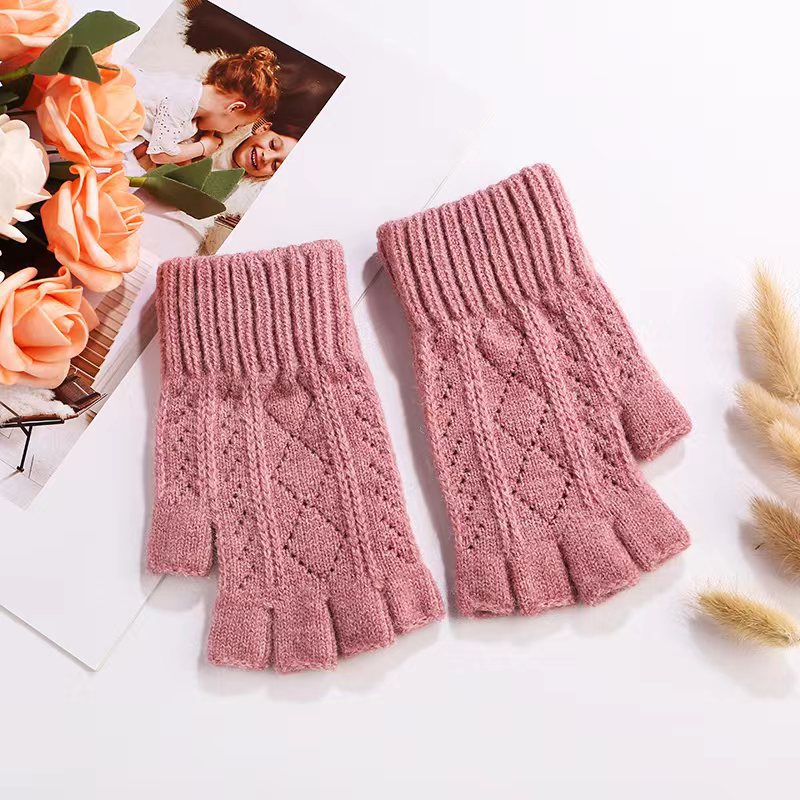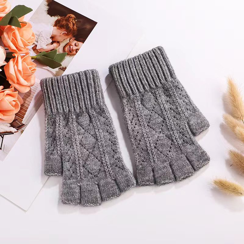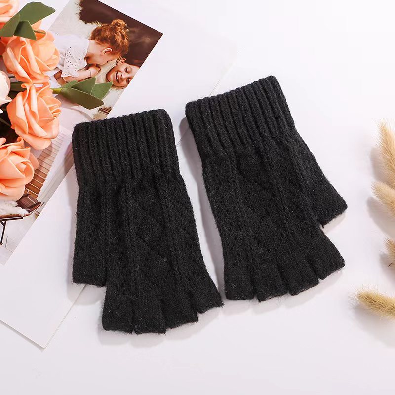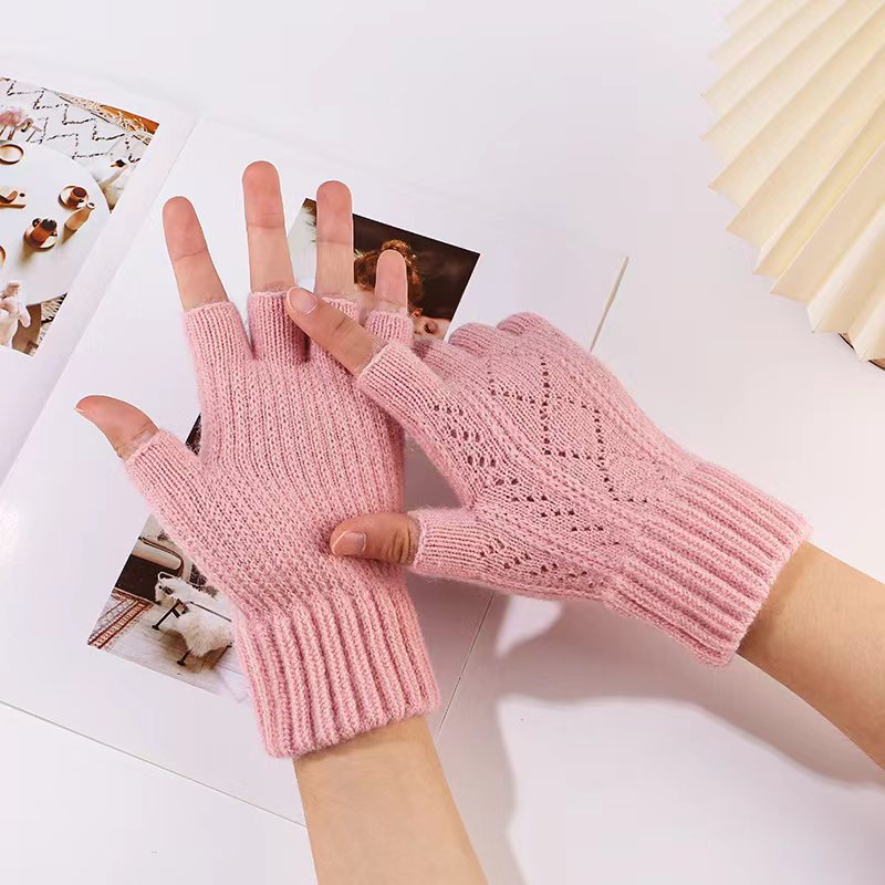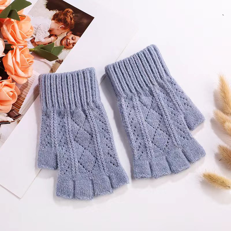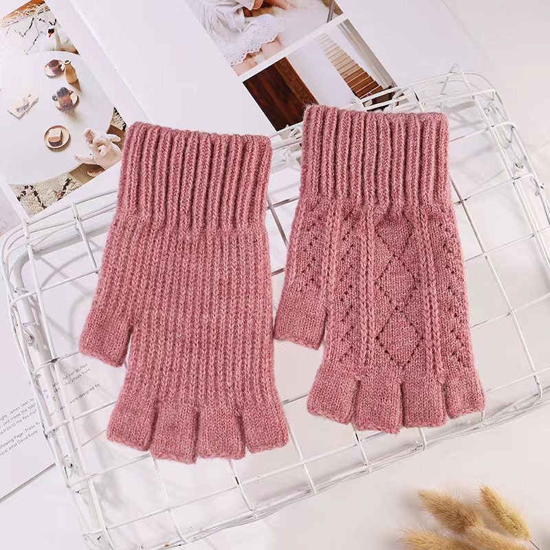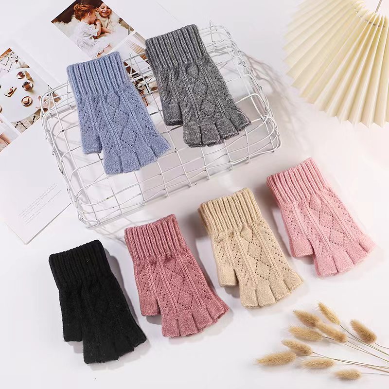 니트 장갑 여성 제조업체 도매 따뜻한 가을과 겨울 양모 반 손가락 단색 오픈 손가락 한국 기모 터치 스크린 장갑스토어 가기