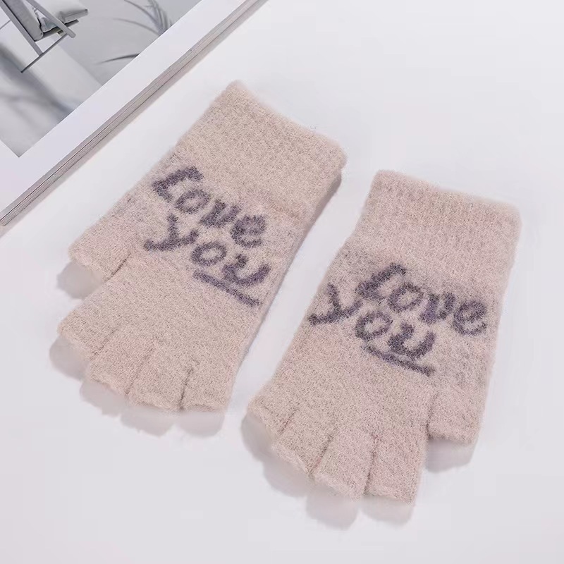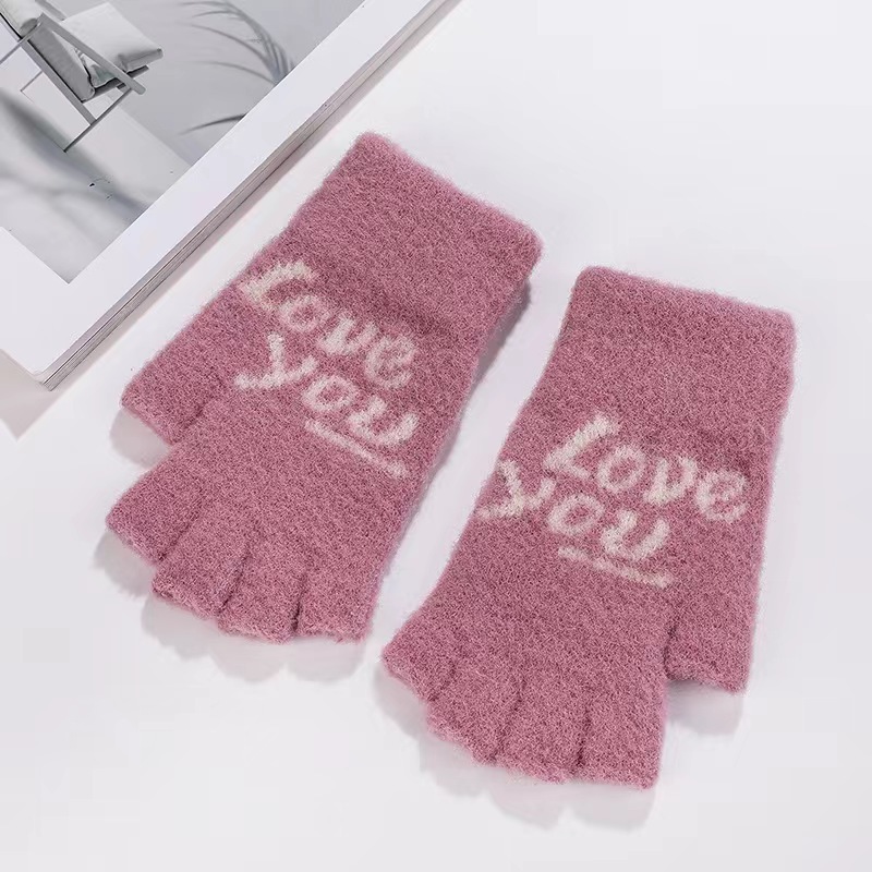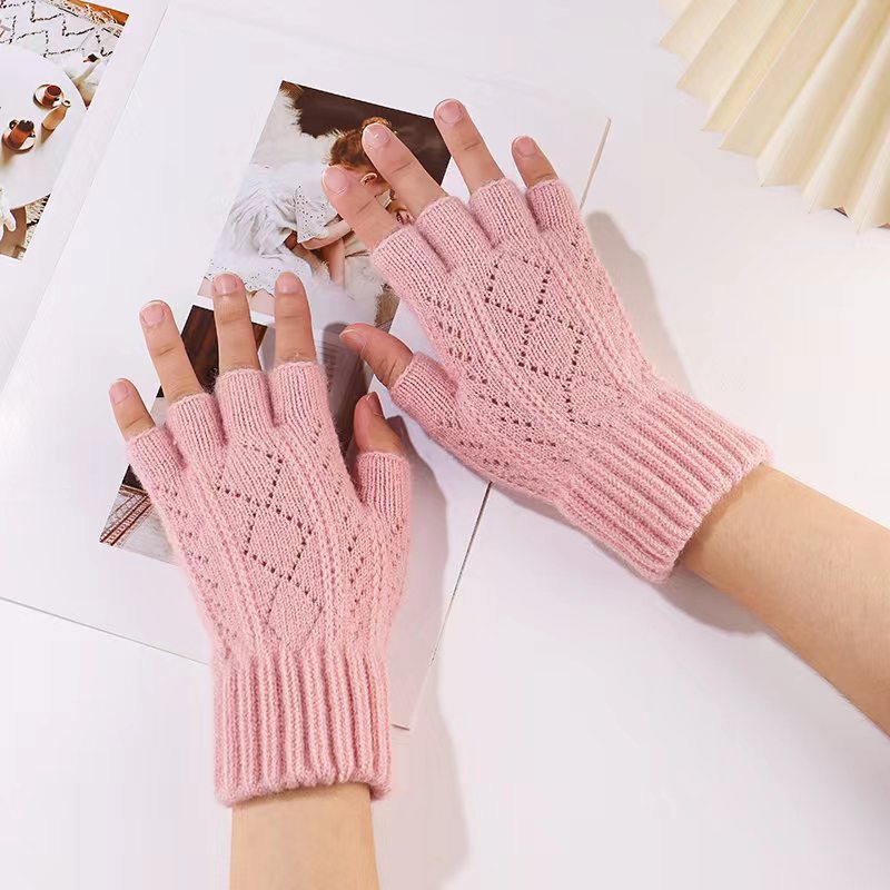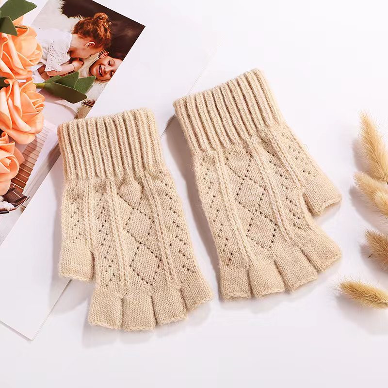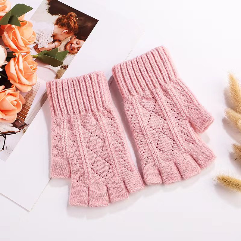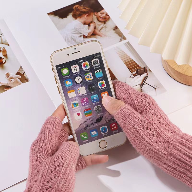 니트 장갑 여성 제조업체 도매 따뜻한 가을과 겨울 양모 반 손가락 단색 오픈 손가락 한국 기모 터치 스크린 장갑스토어 가기