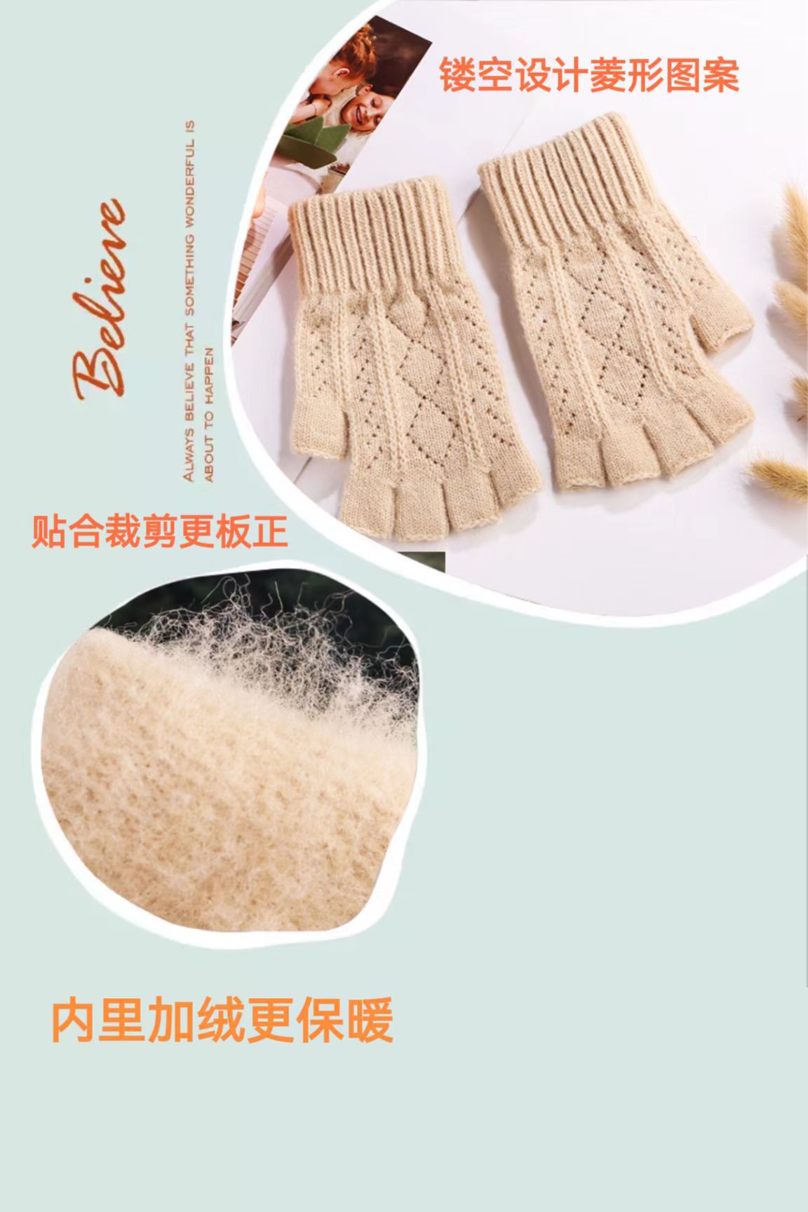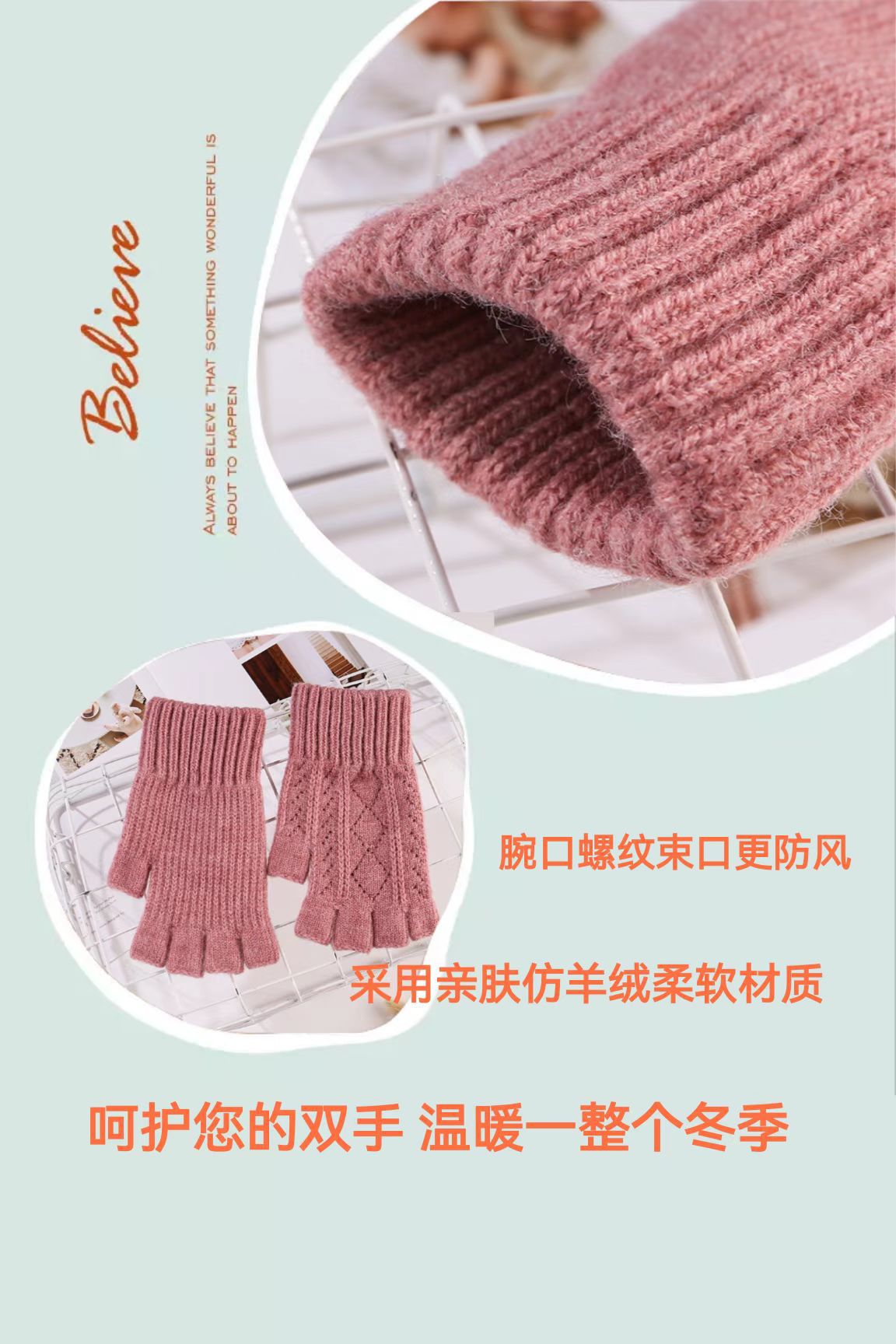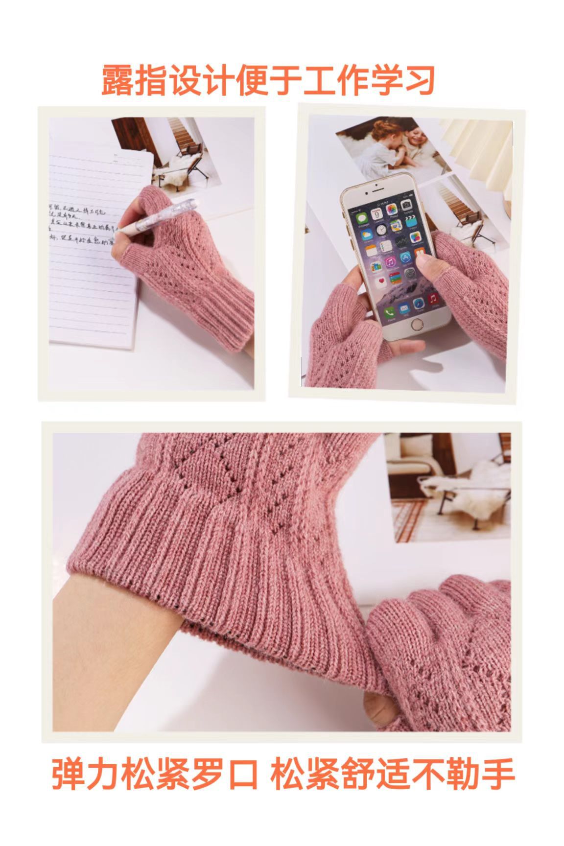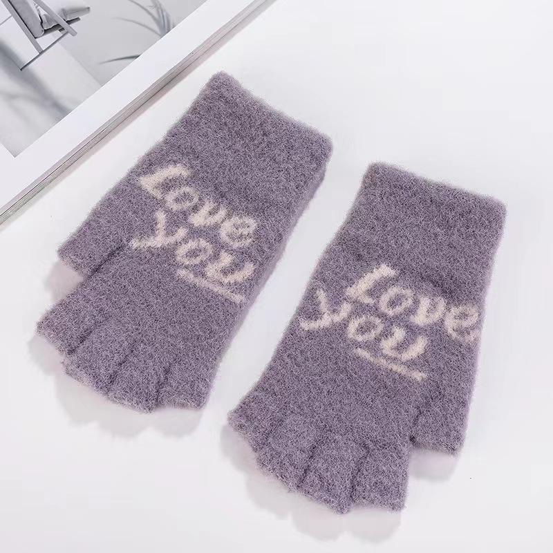 니트 장갑 여성 제조업체 도매 따뜻한 가을과 겨울 양모 반 손가락 단색 오픈 손가락 한국 기모 터치 스크린 장갑스토어 가기