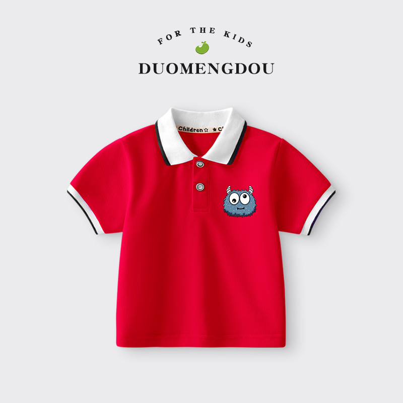 Duomengdou 소년 폴로 셔츠 2025 새로운 어린이 반팔 만화 중소 어린이 클래스 A 어린이 면화 티셔츠 LBC