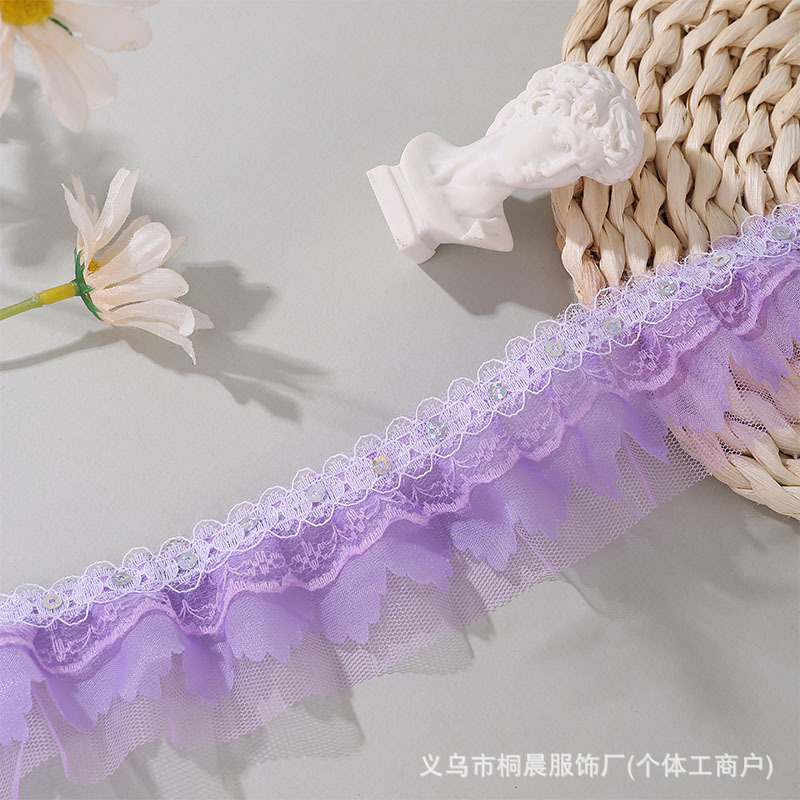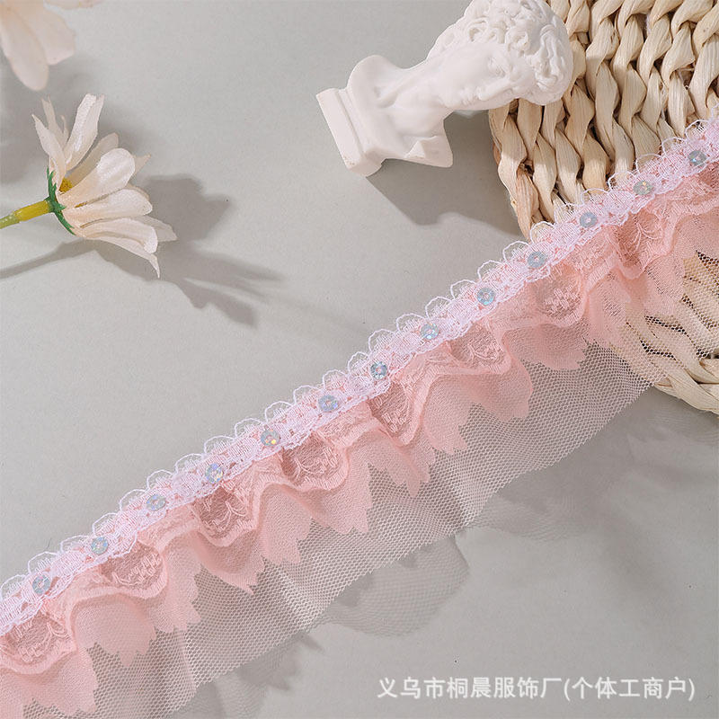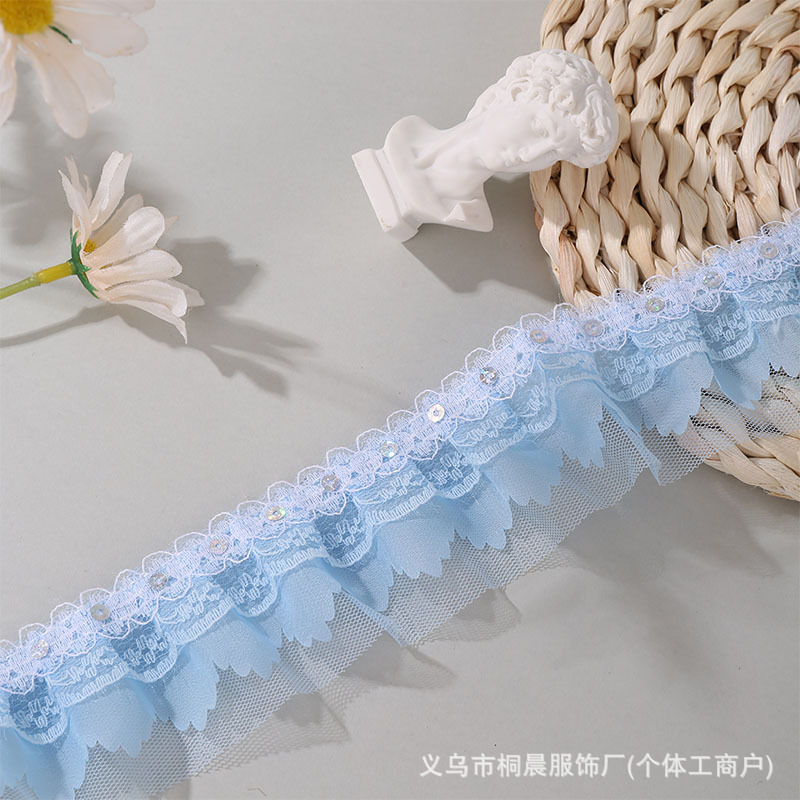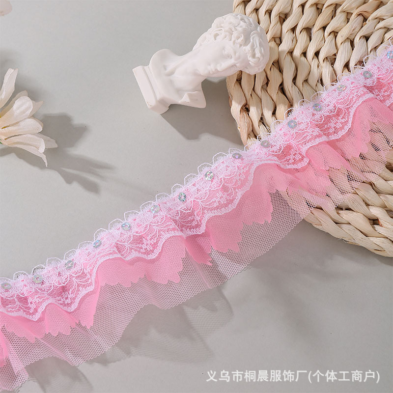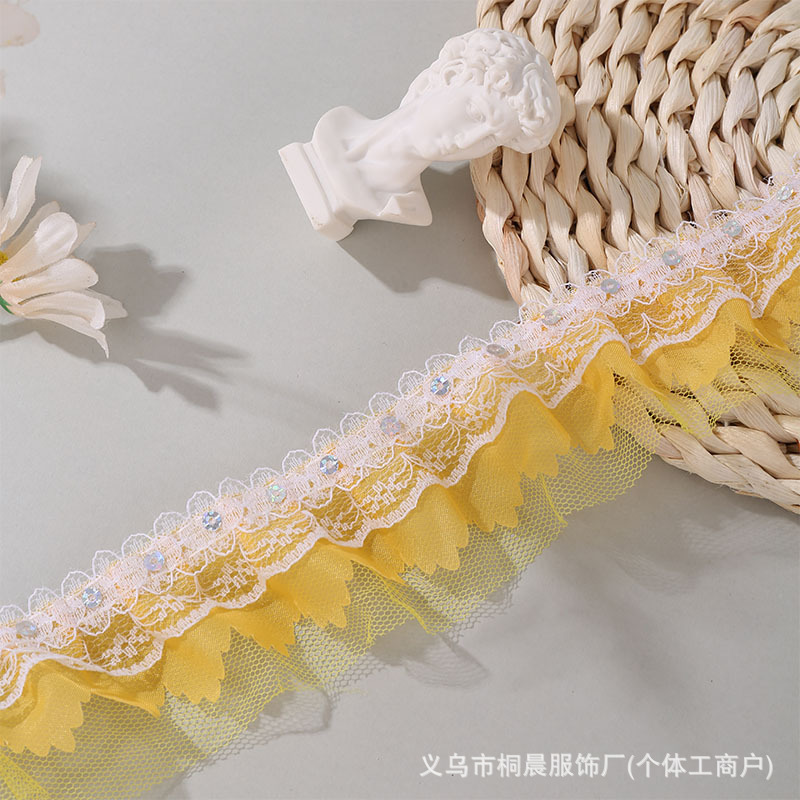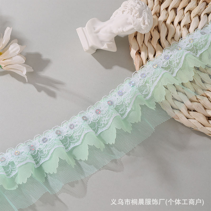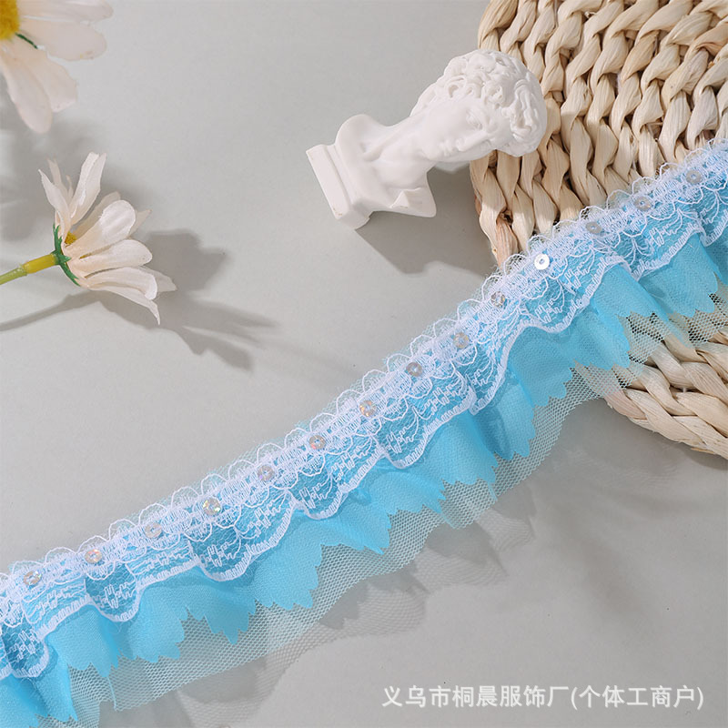 더블 레이어 5cm 스팽글 쉬폰 원사 엠보싱 레이스 컬러 메쉬 주름 레이스 DIY 홈 섬유 원피스 액세서리 도매스토어 가기