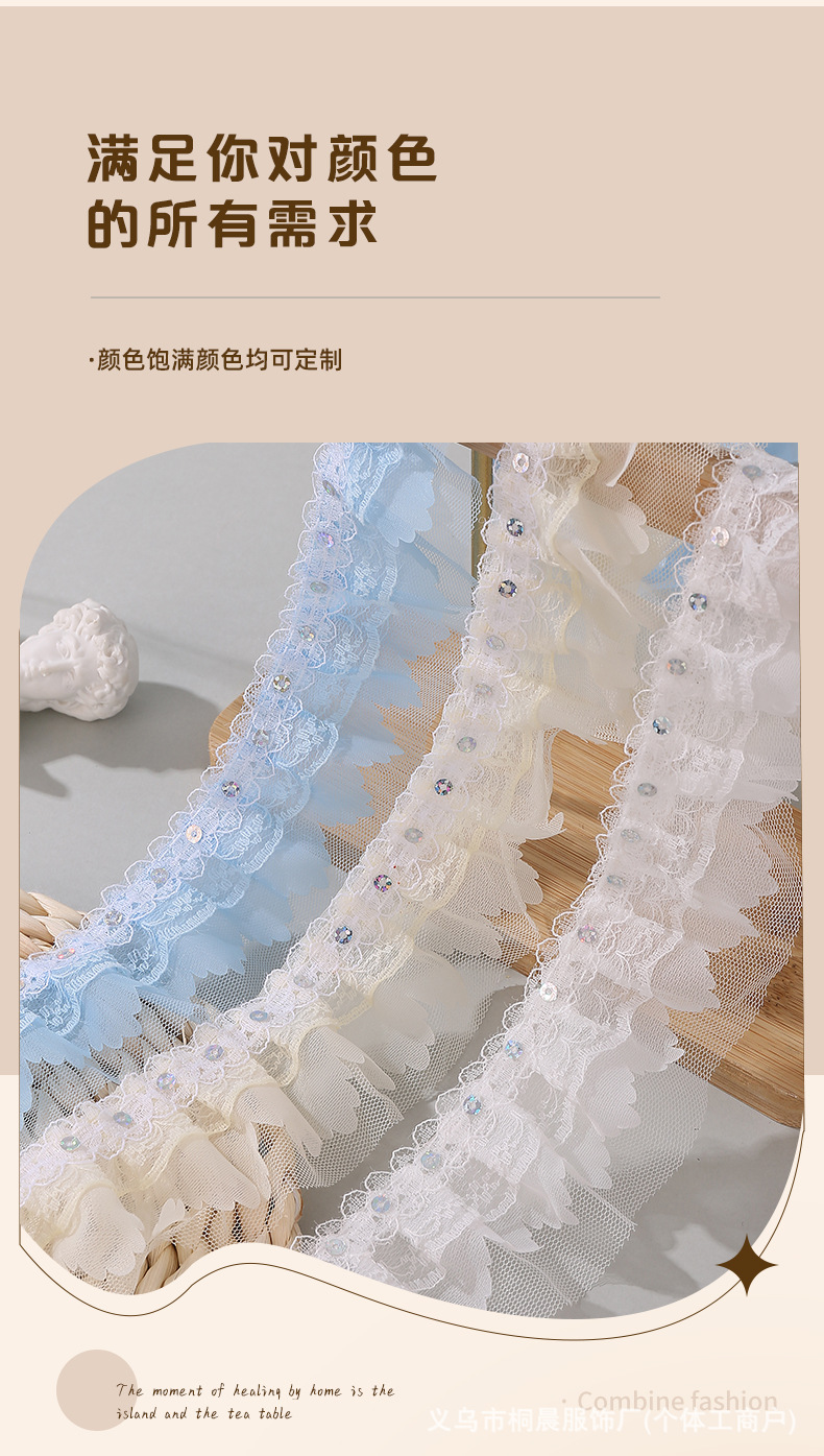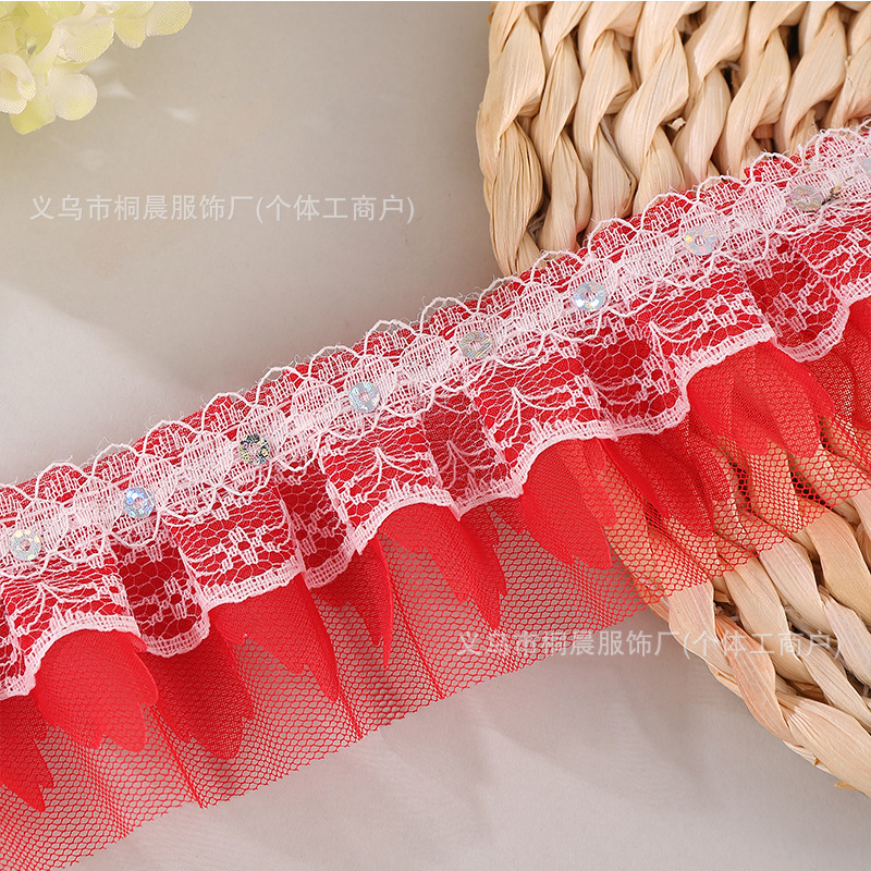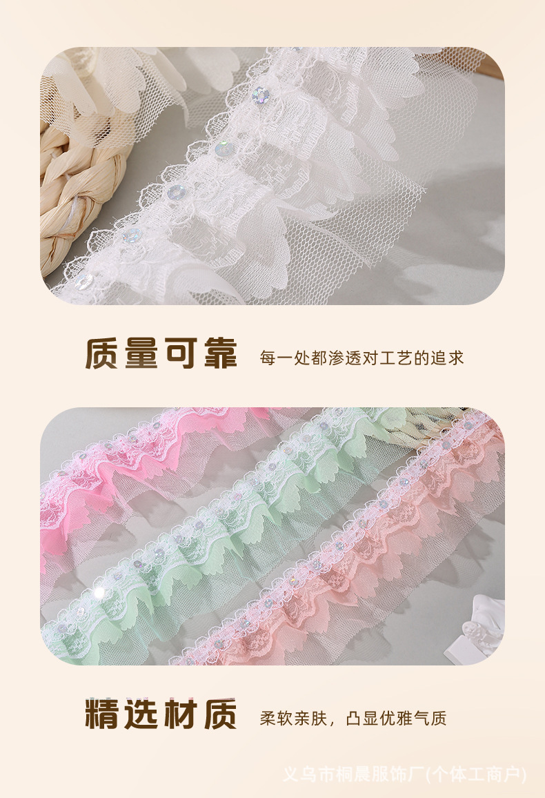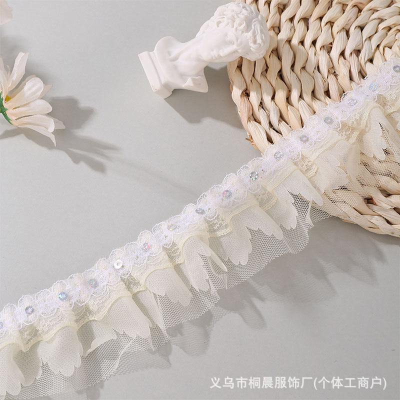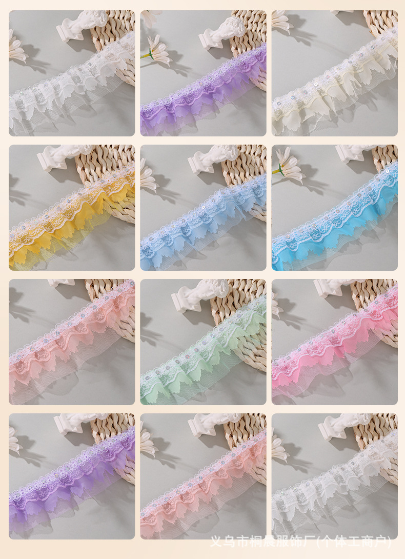 더블 레이어 5cm 스팽글 쉬폰 원사 엠보싱 레이스 컬러 메쉬 주름 레이스 DIY 홈 섬유 원피스 액세서리 도매스토어 가기