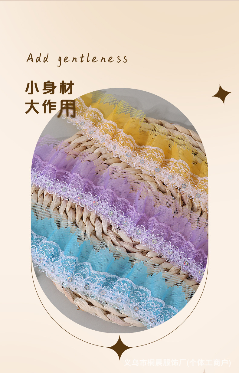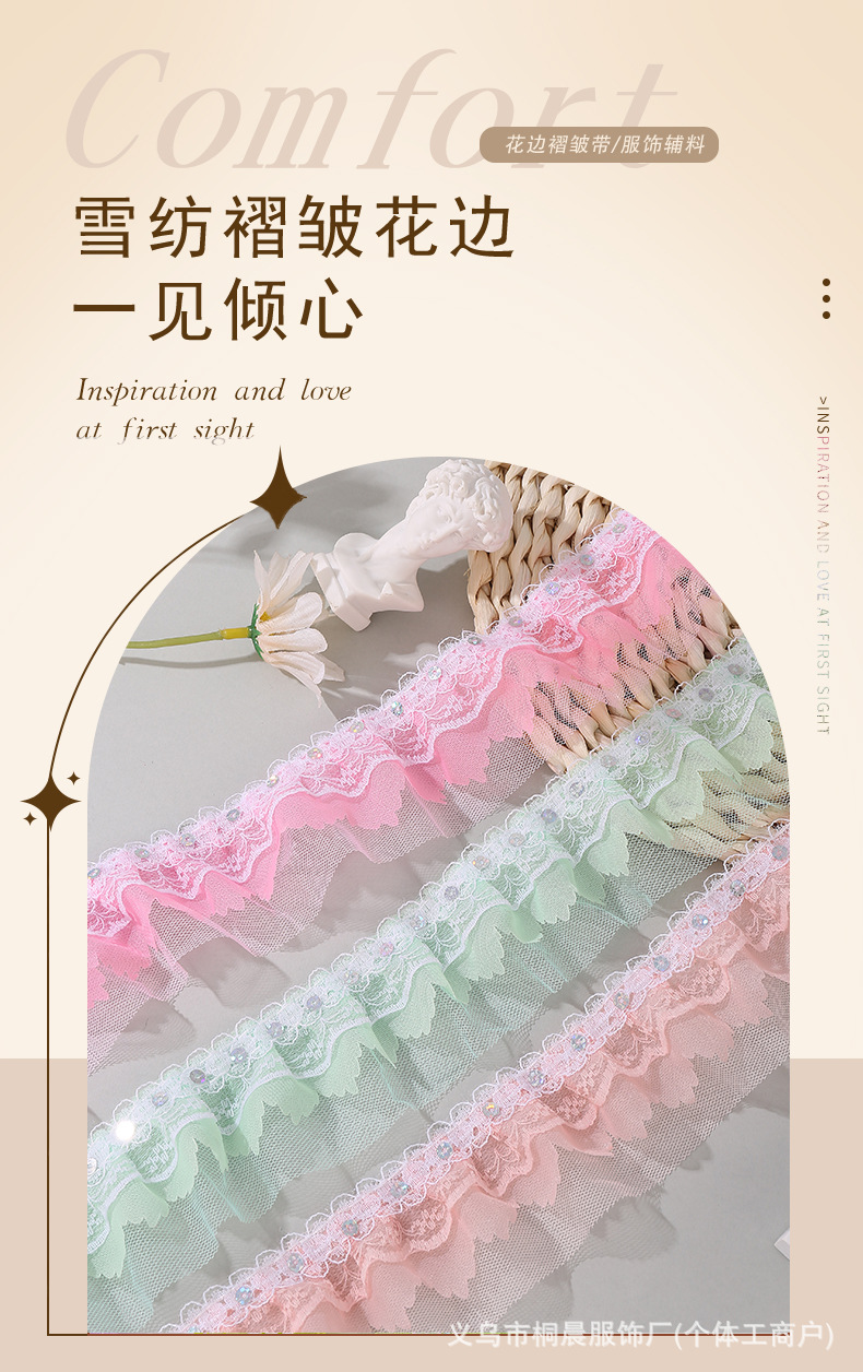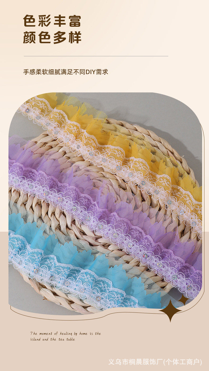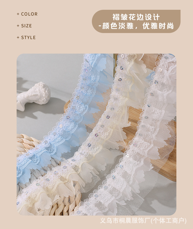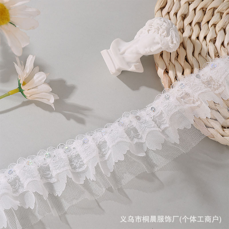 더블 레이어 5cm 스팽글 쉬폰 원사 엠보싱 레이스 컬러 메쉬 주름 레이스 DIY 홈 섬유 원피스 액세서리 도매스토어 가기