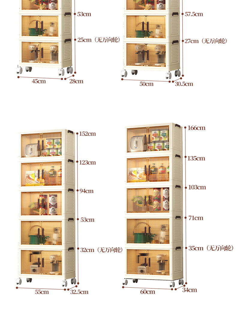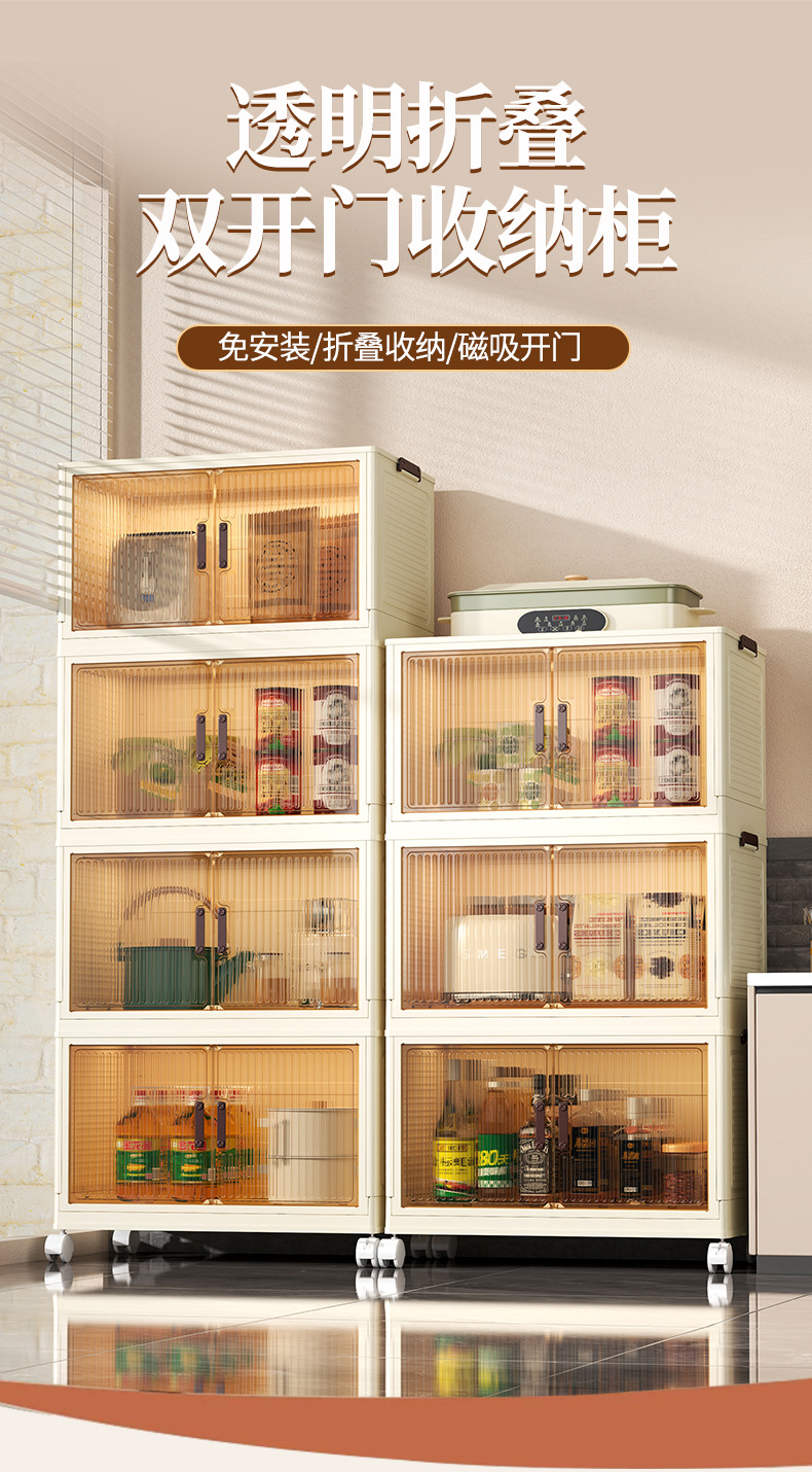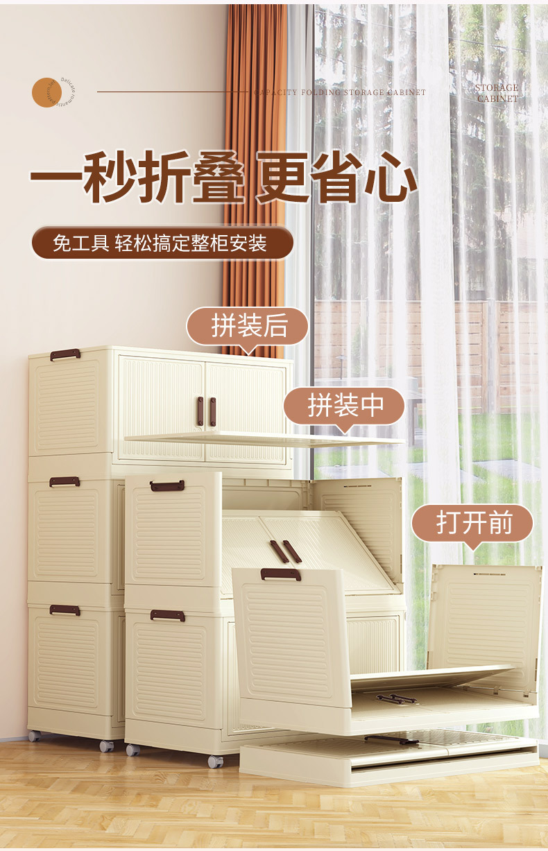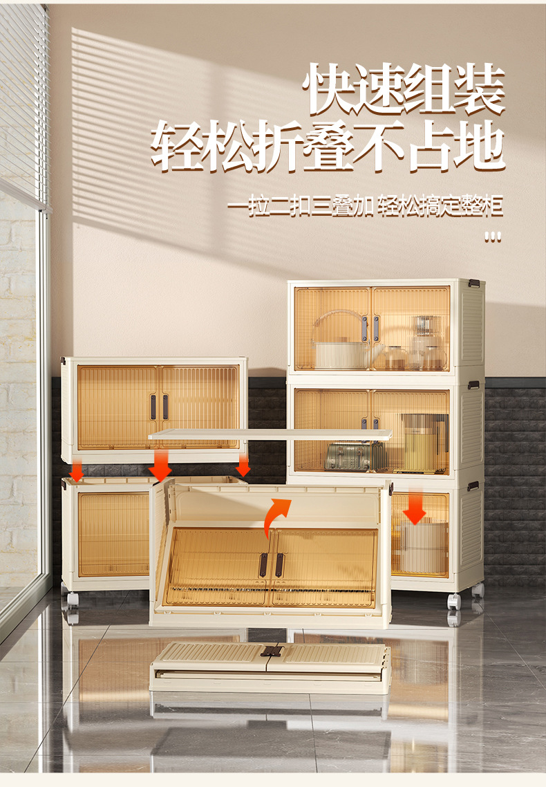 • 50 접이식 저장 캐비닛 1 층-투명 컬러 도어 패널-바퀴 없음