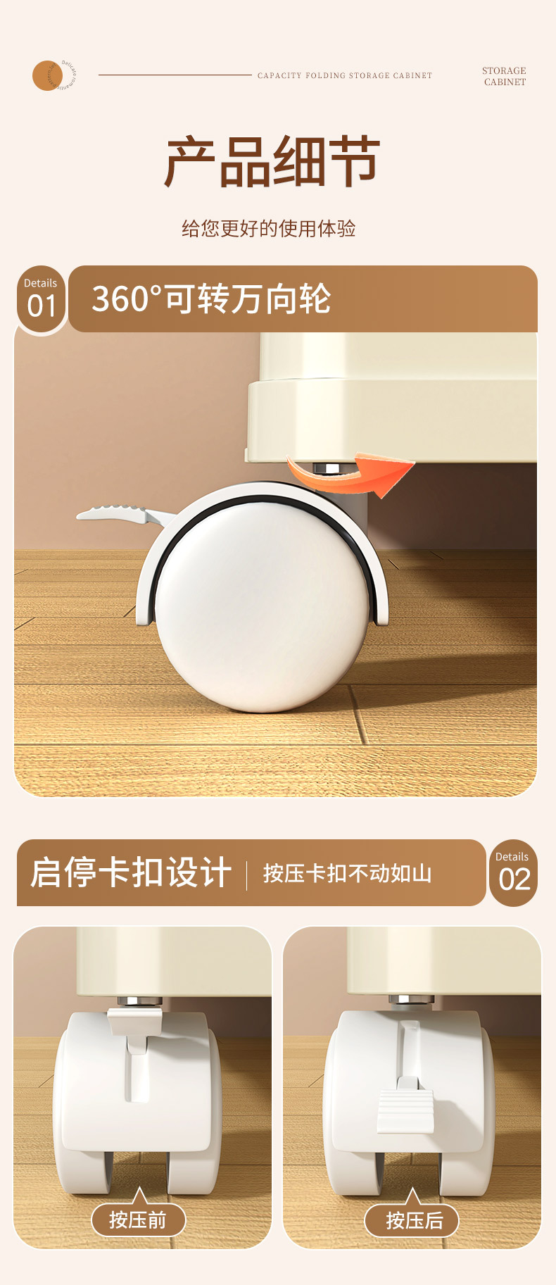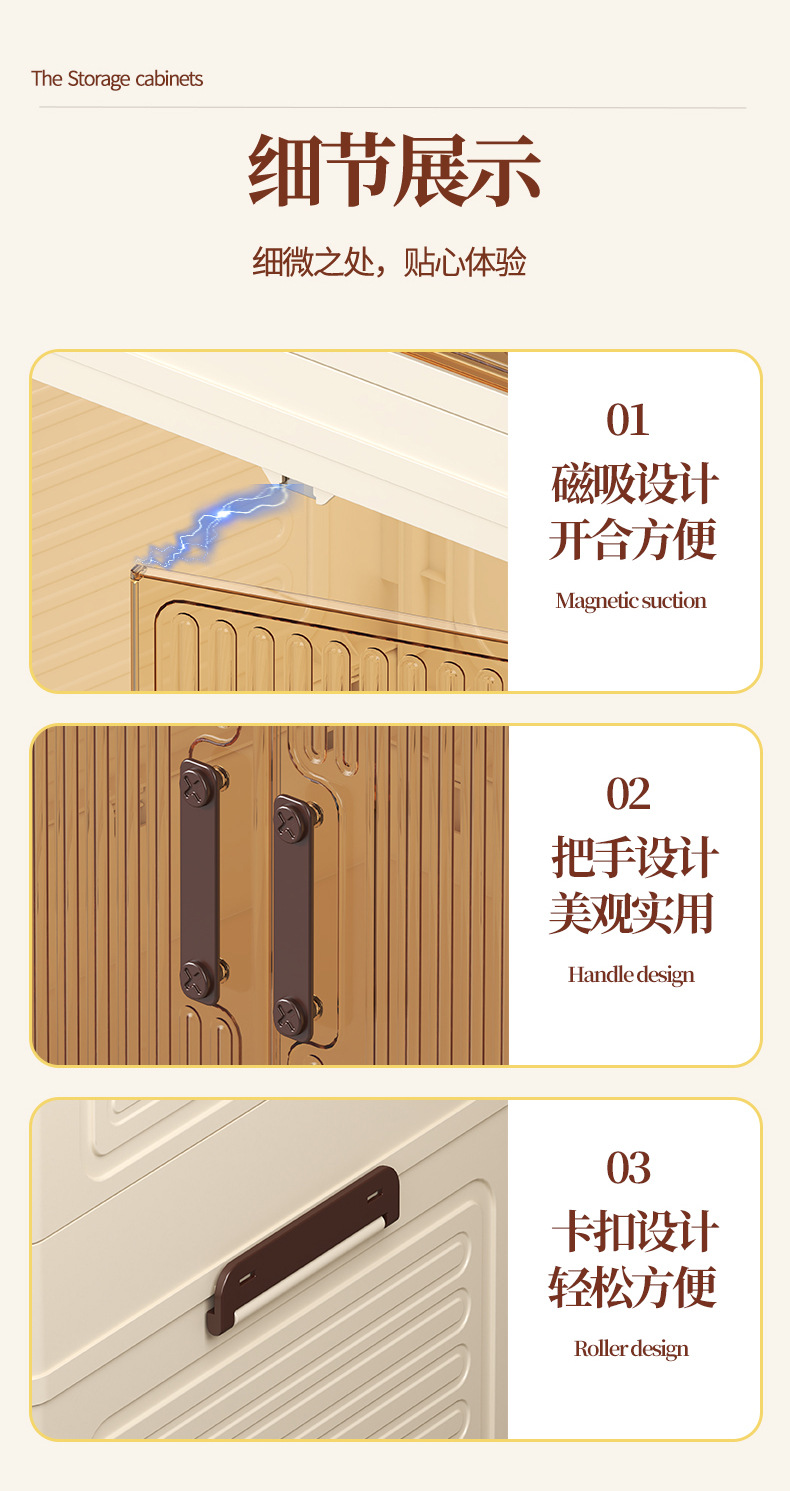 • 55 접이식 저장 캐비닛 1 층-크림 도어-바퀴 없음
