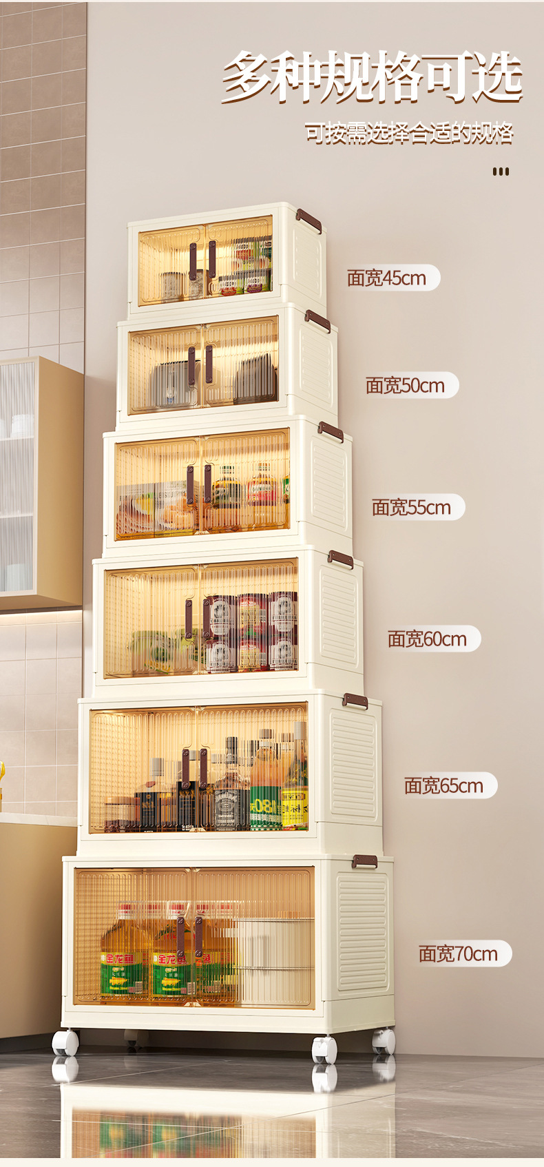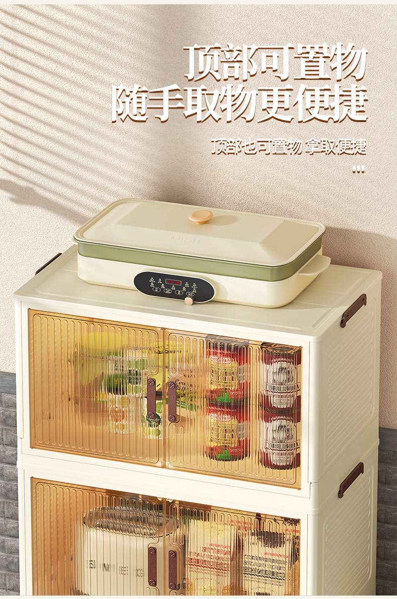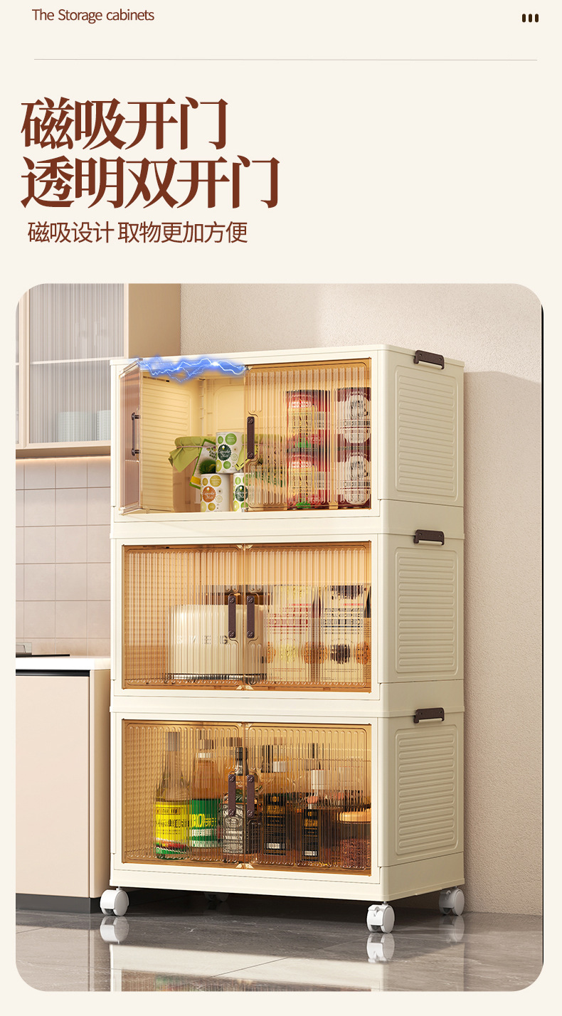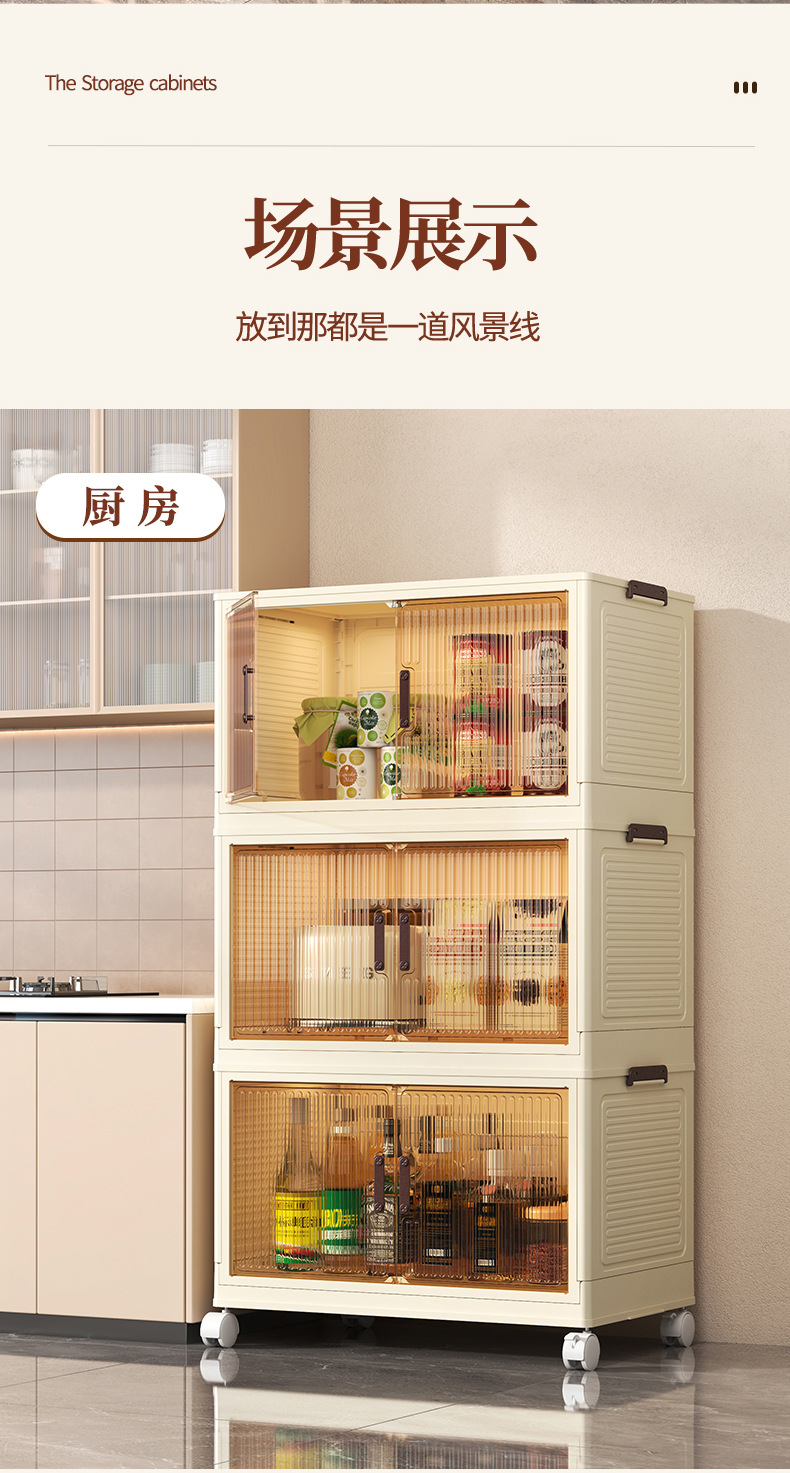• 50 접이식 저장 캐비닛 3 층-투명 컬러 도어 패널