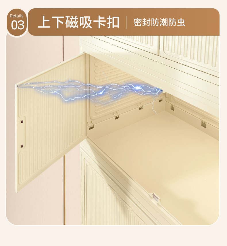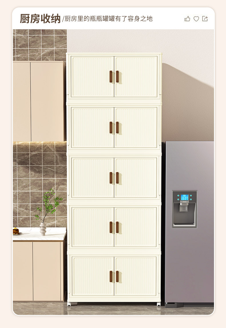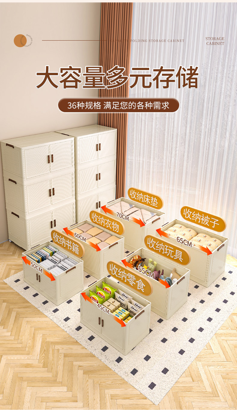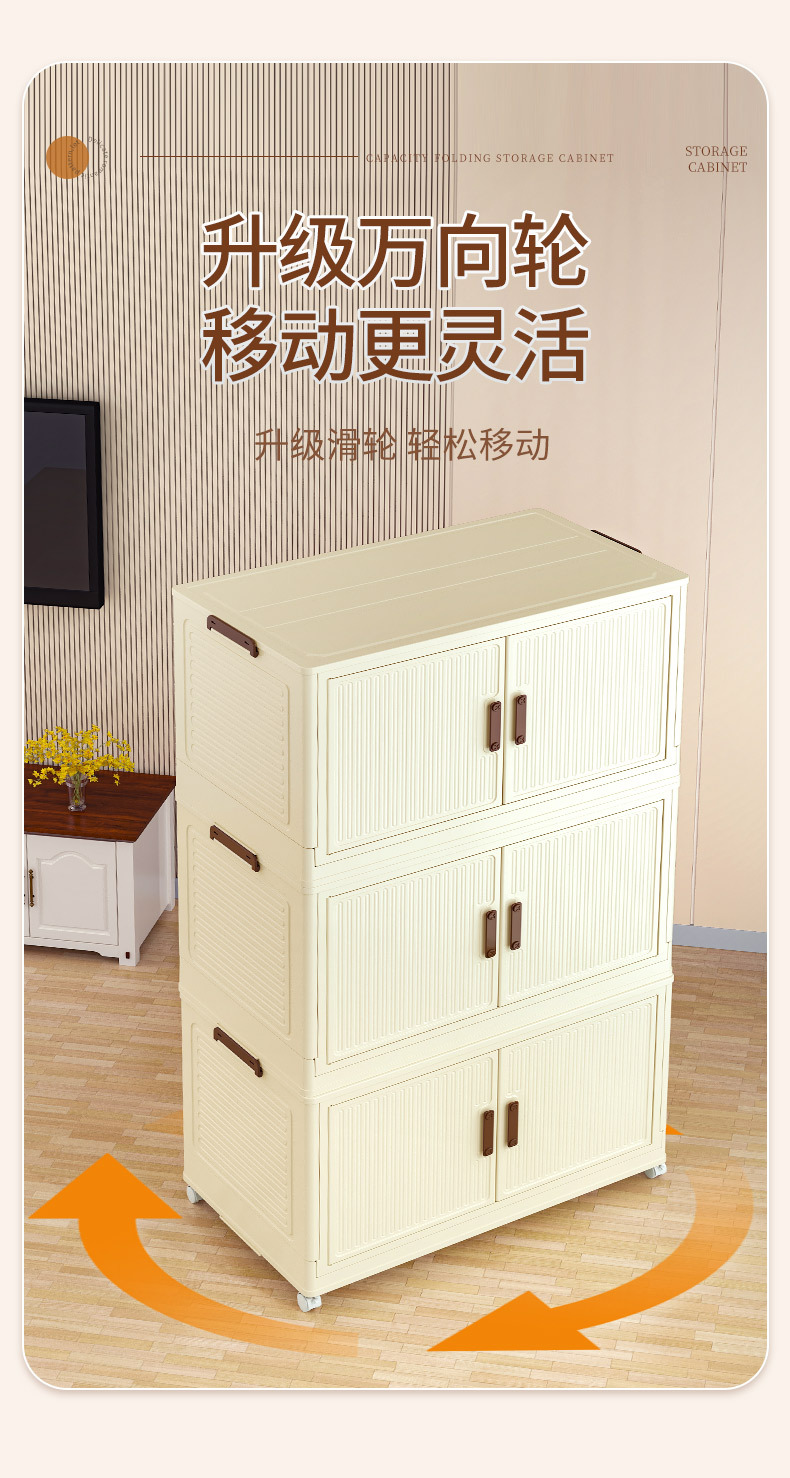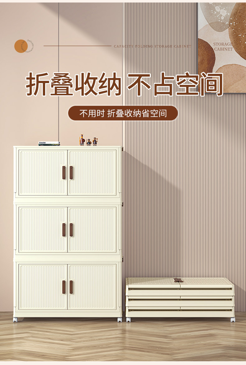 • 50 접이식 저장 캐비닛 3 층 크림 도어