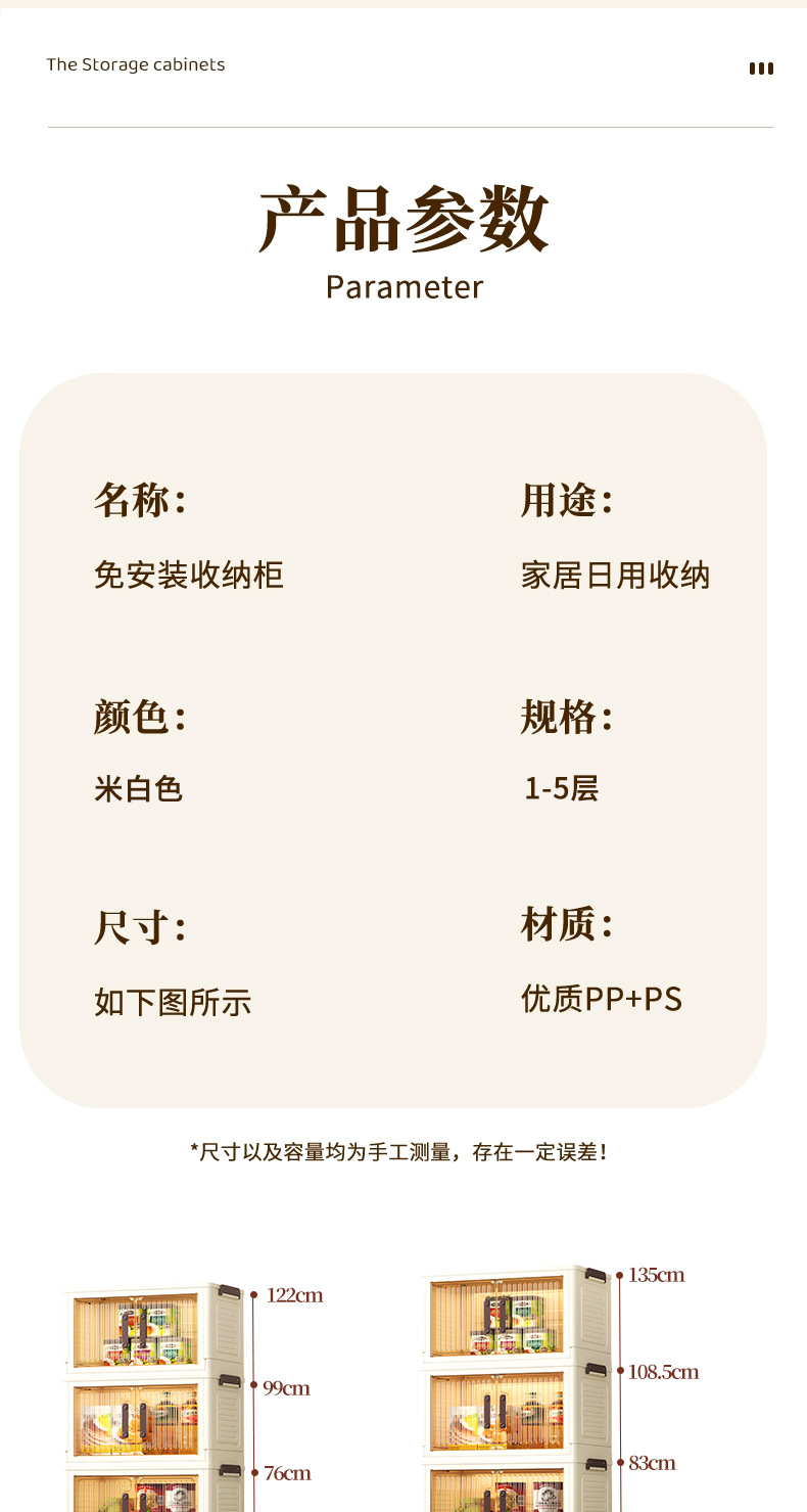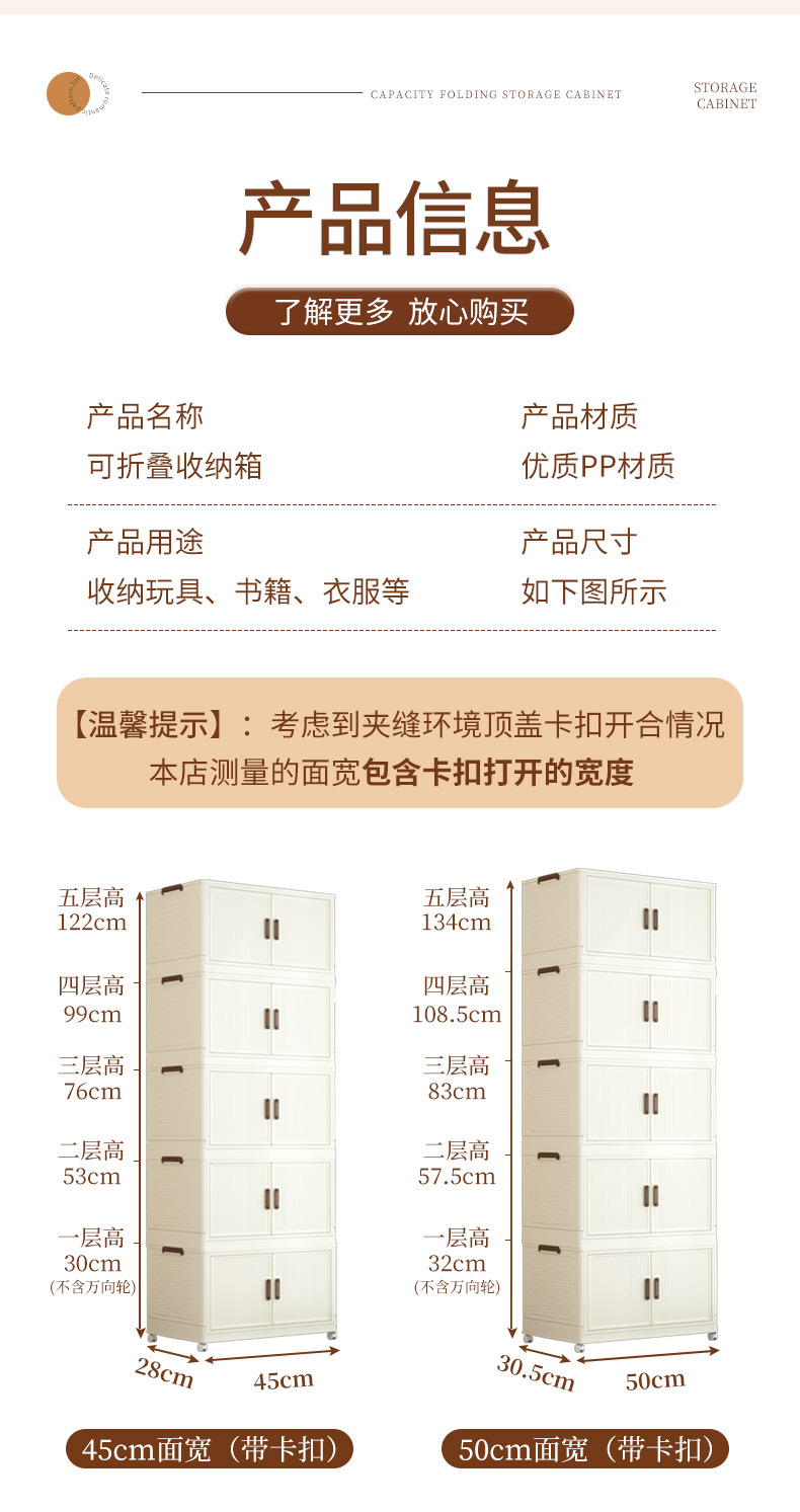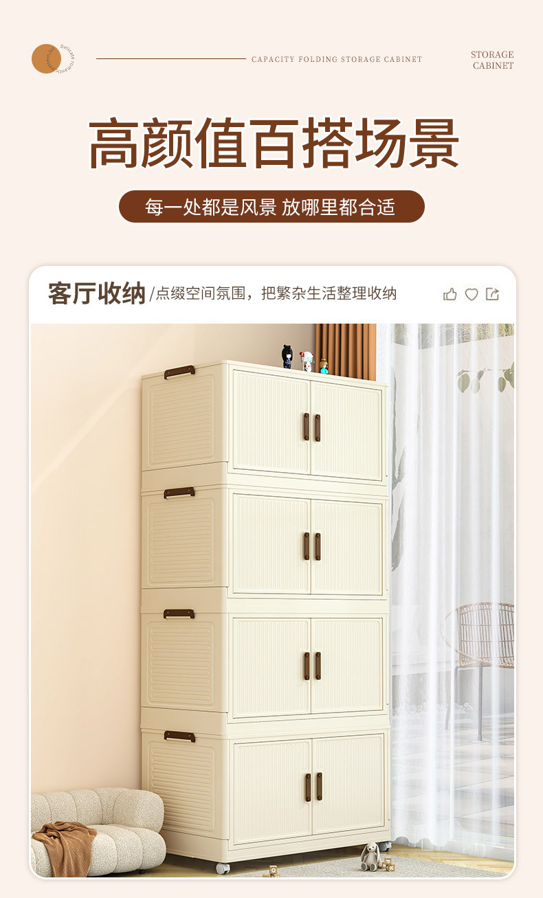 • 50 접이식 저장 캐비닛 5 층-크림 컬러 도어 패널