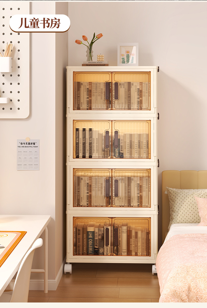 • 50 접이식 저장 캐비닛 4 층-투명 컬러 도어 패널