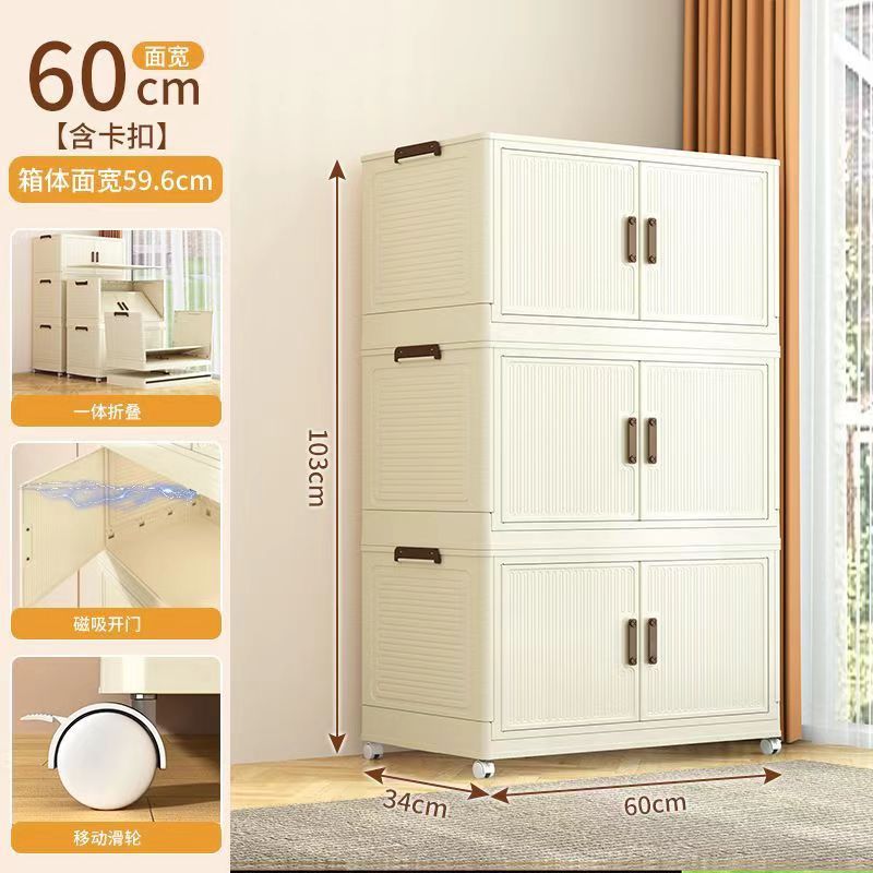 • 60 접이식 저장 캐비닛 3 층 크림 도어